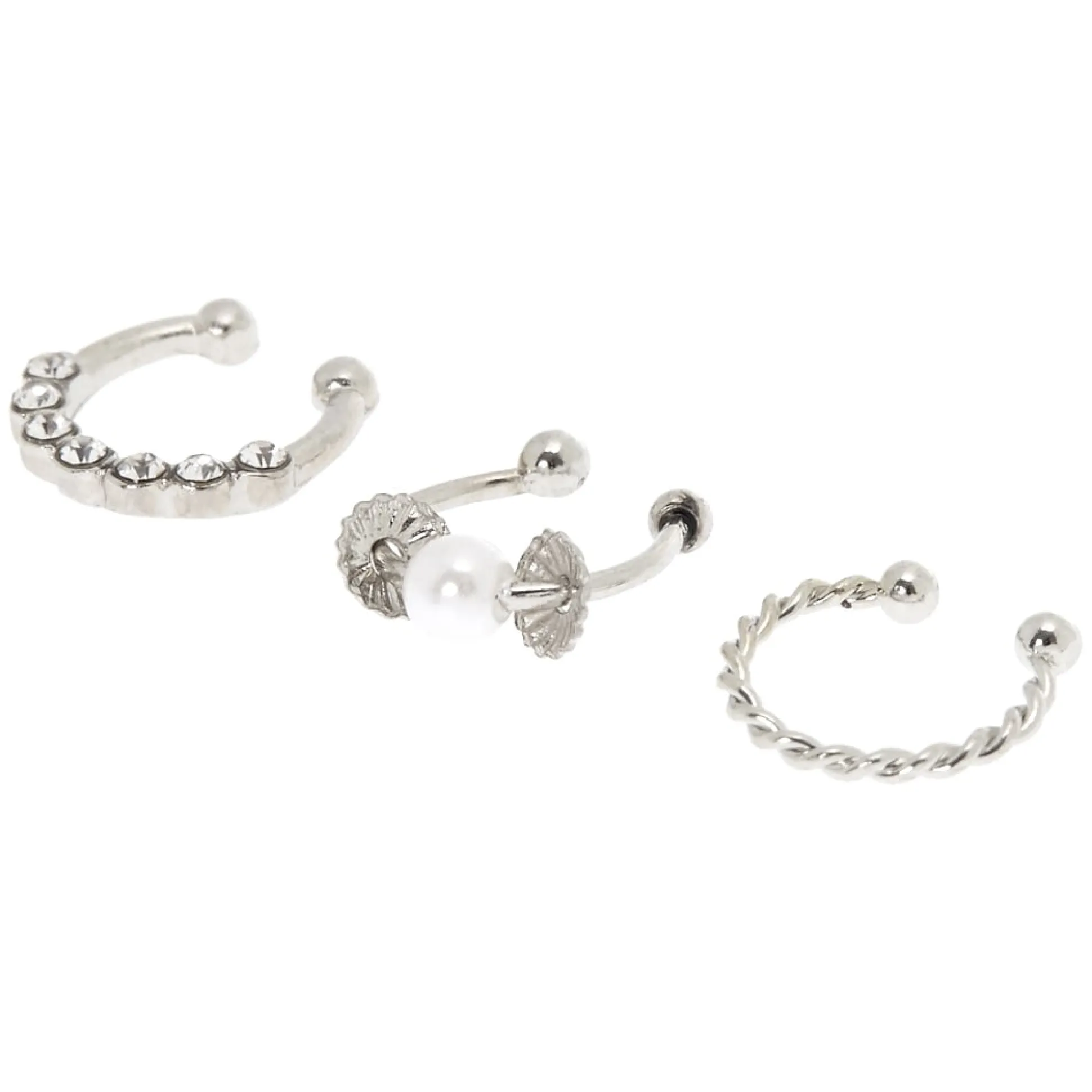 Affiche-toi avec un look anneau de cartilage décalé sans avoir besoin de piercing ! Ce lot de faux anneaux de cartilage super stylé comprend un modèle avec des strass, un modèle avec des perles d’imitation et un modèle tressé.