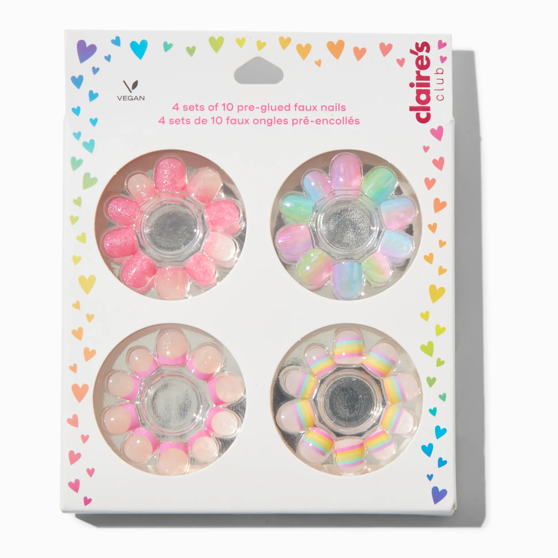 Ces faux ongles vegan s’appliquent facilement, sans colle. Il te suffit d’appliquer les faux ongles pré-collés de la taille correspondante, d’appuyer dessus, et tu es prête. Avec 4 lots de 10 faux ongles autocollants, ces ongles conçus pour les petits doigts sont parfaits pour les cadeaux d’anniversaire et les soirées pyjama.&