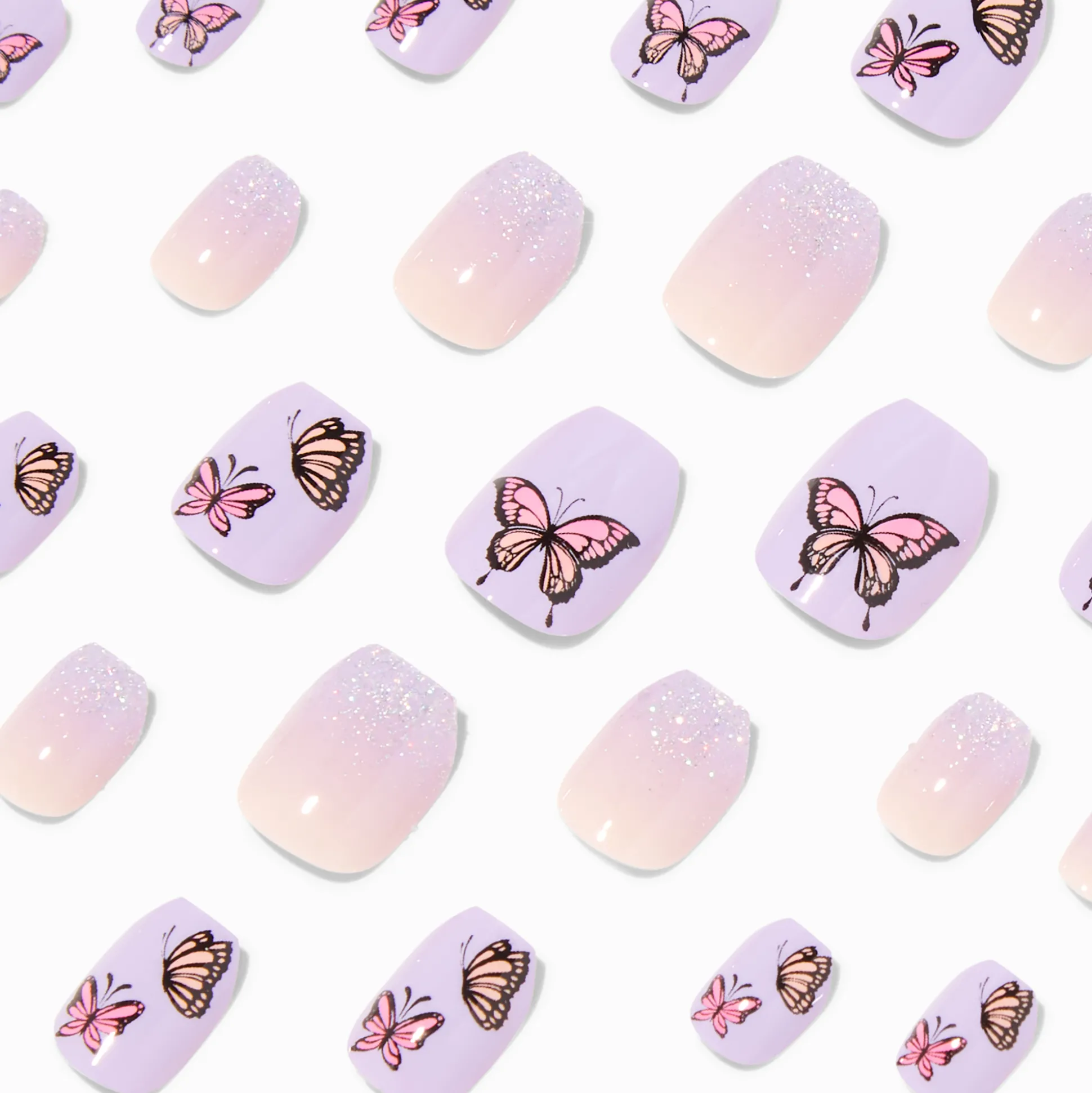 Faux ongles vegan autocollants ballerine papillon violet - Lot de 24