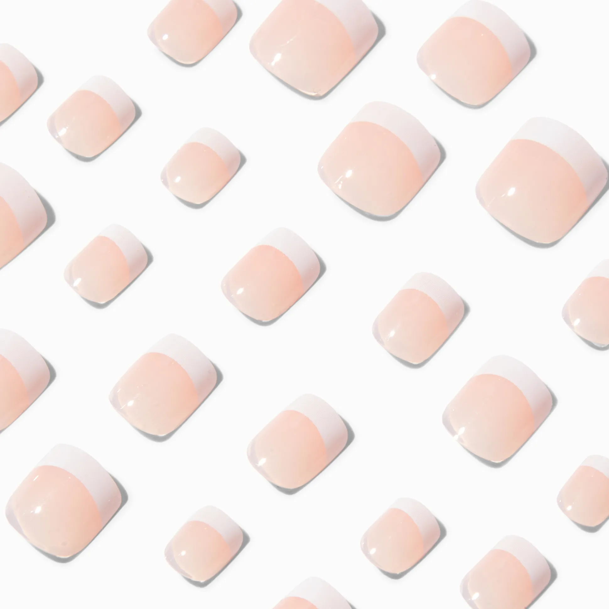 Fais le plein de bonnes ondes classiques et décore tes doigts avec ce lot de faux ongles super tendance. Ce lot de faux ongles de forme carrée arbore un design French manucure au look rétro. Ces faux ongles sont vegan et s’appliquent rapidement : appuie dessus et tu es prête !