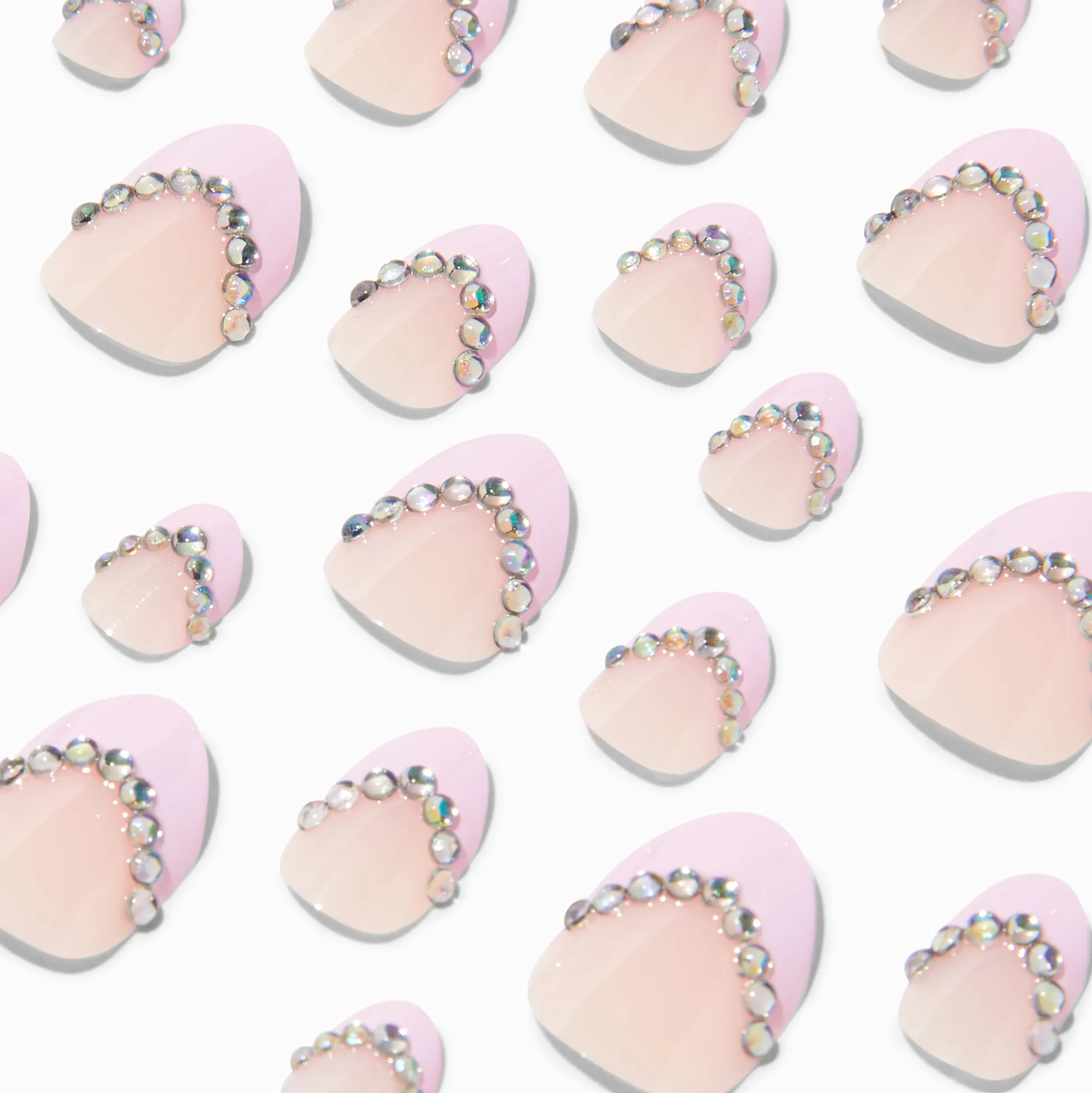 Sois sérieusement glamour jusqu’au bout des doigts avec ce lot de faux ongles super tendance. Ce lot de faux ongles à la forme stiletto arbore l’extrémité French manucure combiné à des détails en strass. Les faux ongles vegan sont faciles à poser : il suffit d’appuyer dessus et tu es prête !