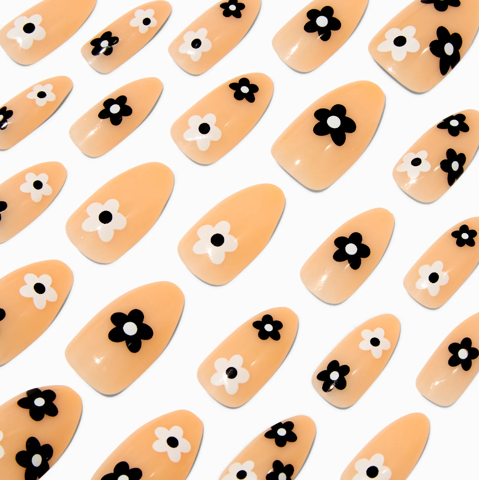 Avec une coupe améliorée et une tenue allant jusqu’à 7 jours, ces faux ongles vegan sont des incontournables à la pointe de la mode. Avec 12 tailles différentes, trouver la forme parfaite n’a jamais été aussi simple. Avec leur coupe stiletto, ces faux ongles arborent des designs marguerite noirs et blancs.