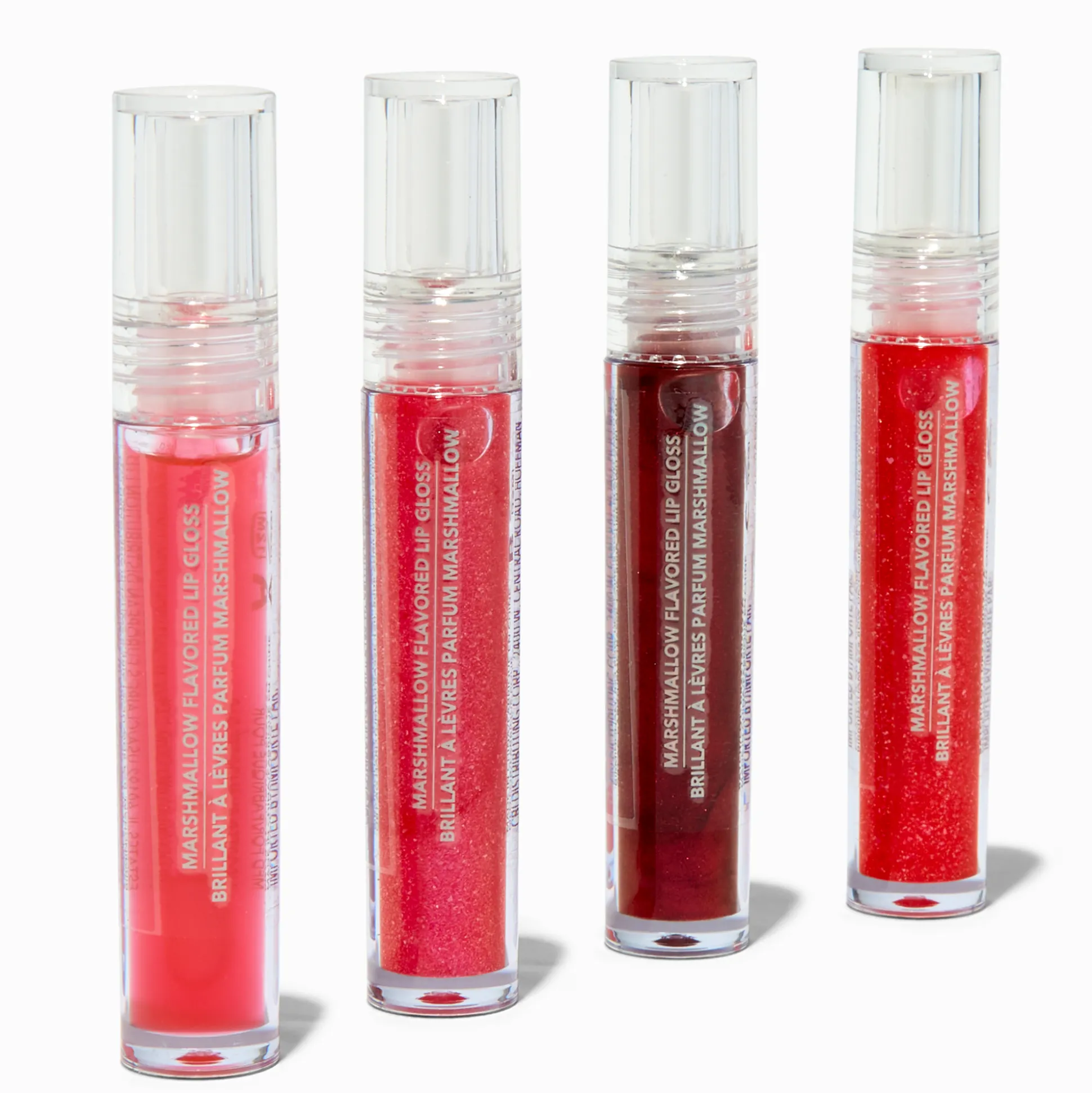 Fais briller tes lèvres avec les belles nuances rouges de ce lot de gloss chatoyants. Comprend 4 gloss dans une palette monochrome rouge.