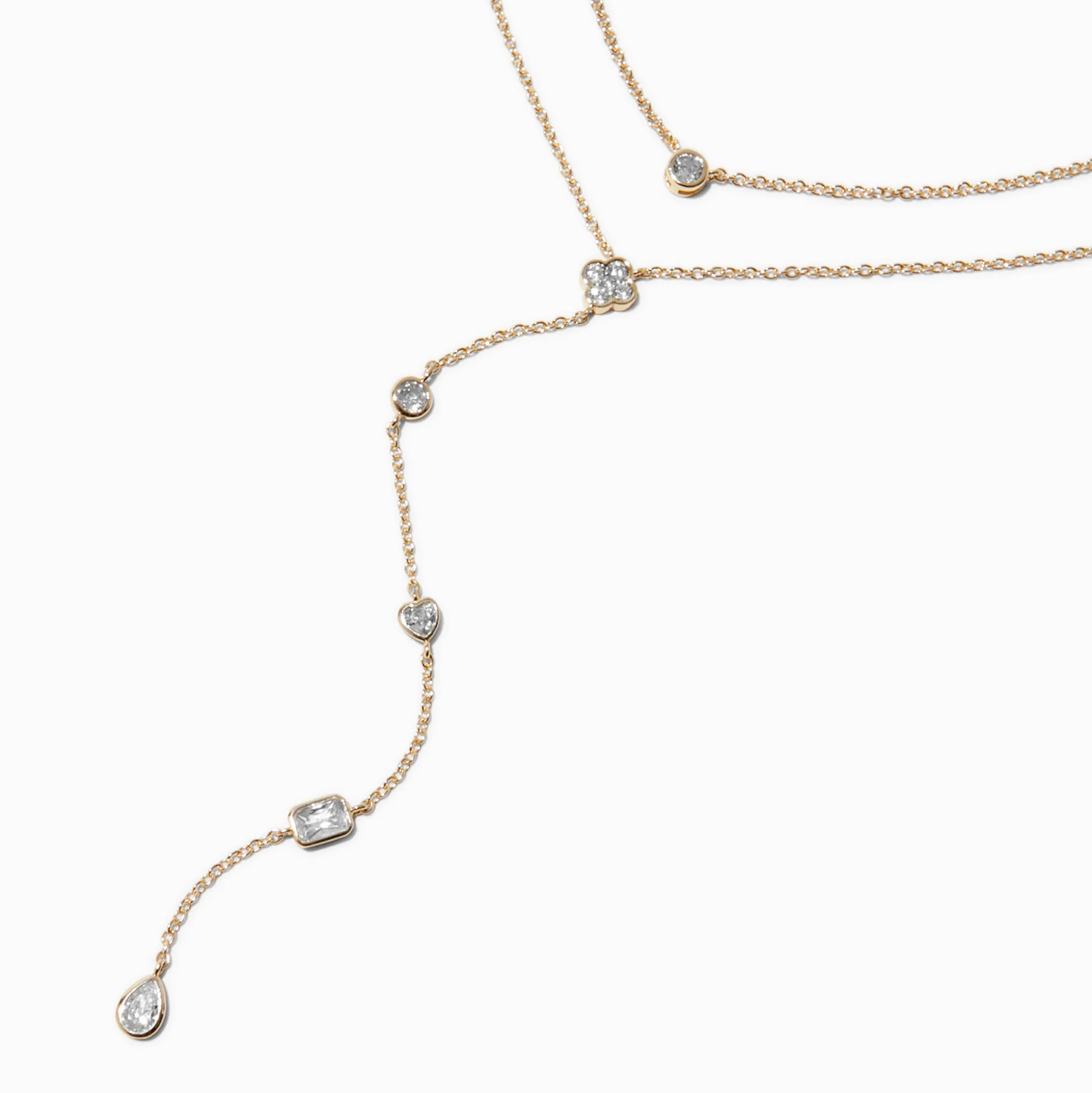 Give your special occasion look extra drip with this y-neck multi-strand necklace! Perfect to wear for a night out on the town, this multi-strand necklace features a short y-neck chain and a longer y-neck chain accented with different shaped cubic zirconias.