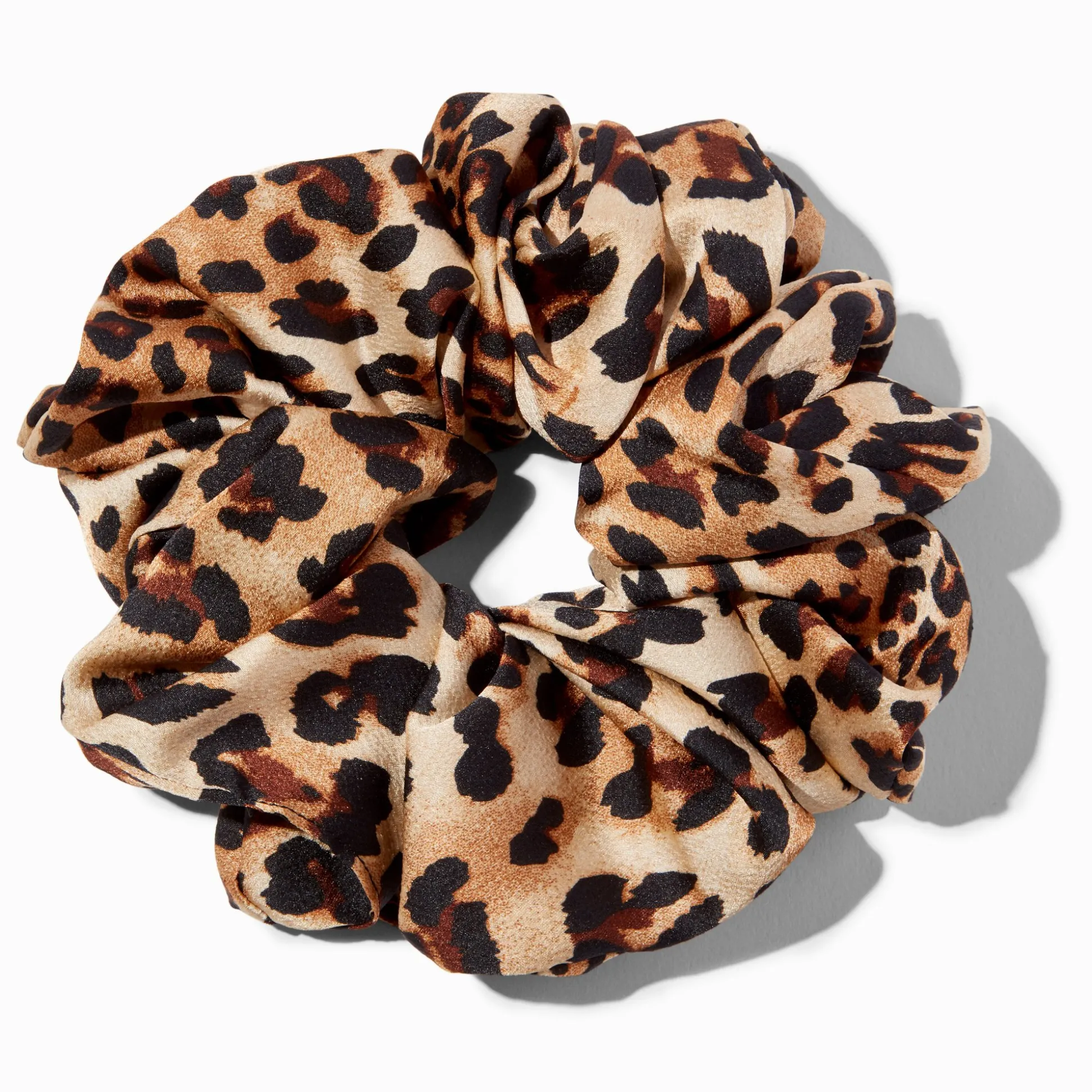 Un gros chouchou fait vraiment sensation quand tu le portes sur une queue de cheval ou un chignon. Tu peux aussi le porter en guise de bracelet ! Ce modèle arbore un imprimé léopard.