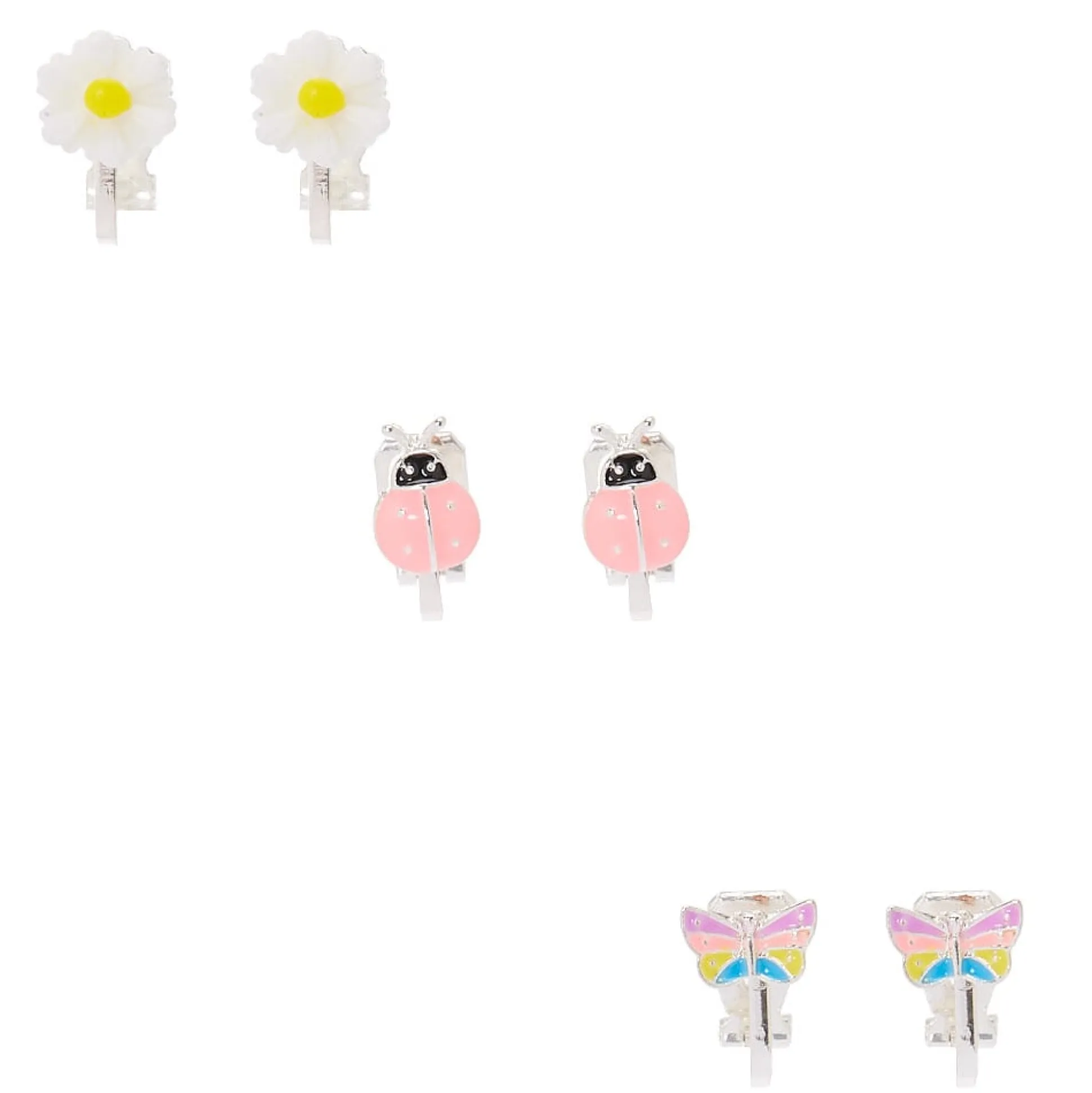 Offre à tes oreilles un relooking printanier grâce à ces boucles d’oreille super mignonnes ! Ce lot de trois boucles d’oreille à clip aux tons pastel comportent des marguerites, des coccinelles roses et des papillons arc-en-ciel.