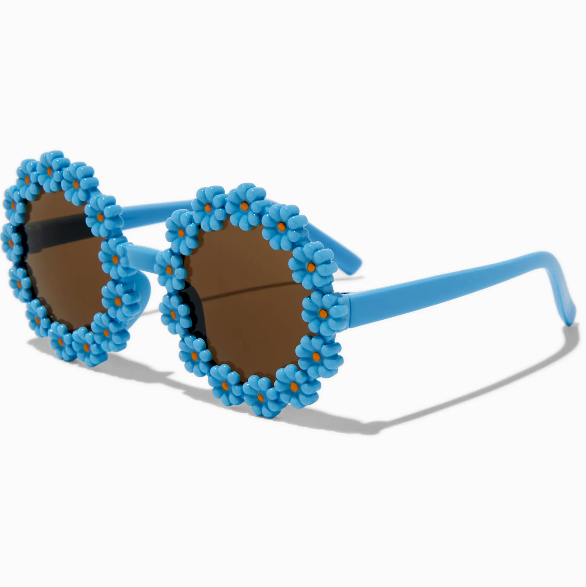 Protégez ses yeux du soleil avec ces lunettes de soleil super mignonnes ! Les lunettes de soleil ont une monture recouverte de fleurs bleues et des verres ronds.
