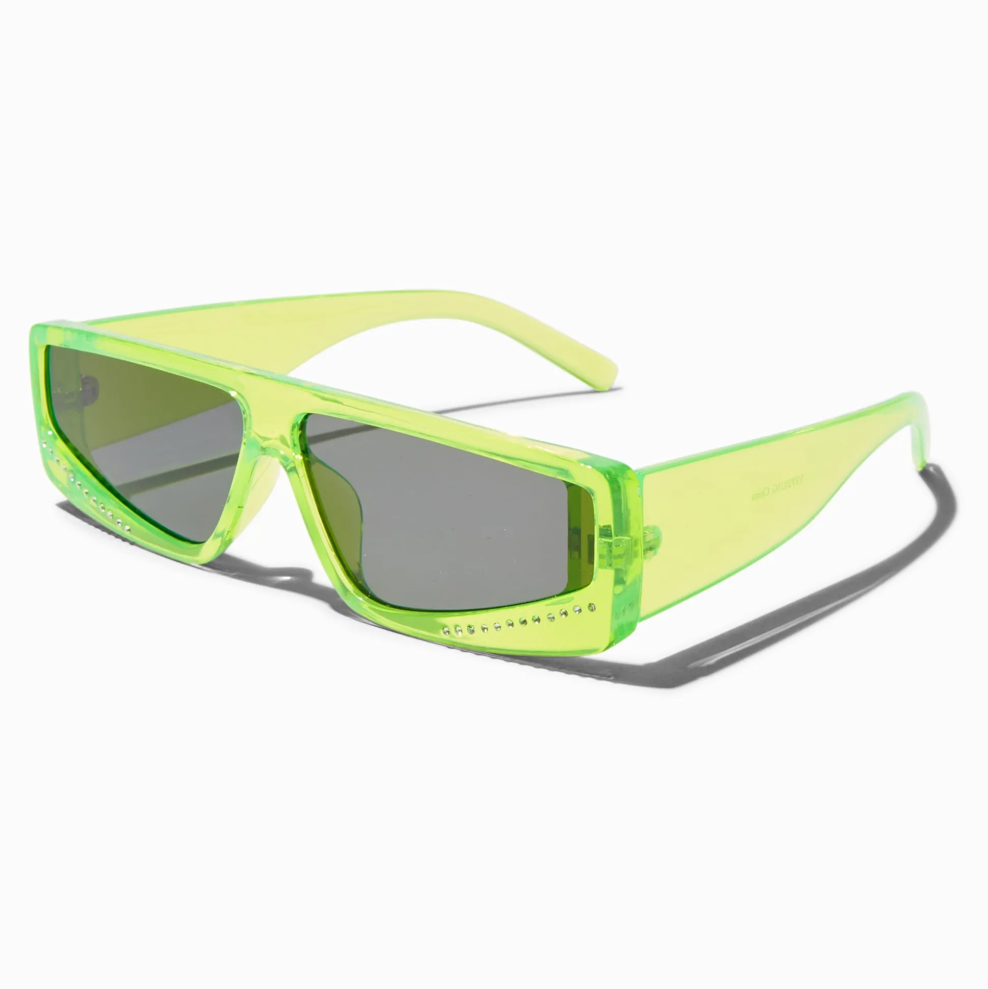 Protège tes yeux du soleil et démarque-toi par la même occasion ! Ces lunettes de soleil de style racer arborent une monture vert fluo décorée de petits strass. Glisse-les dans ton sac à dos ou ton sac à main pour les avoir toujours à portée de main quand tu sors.