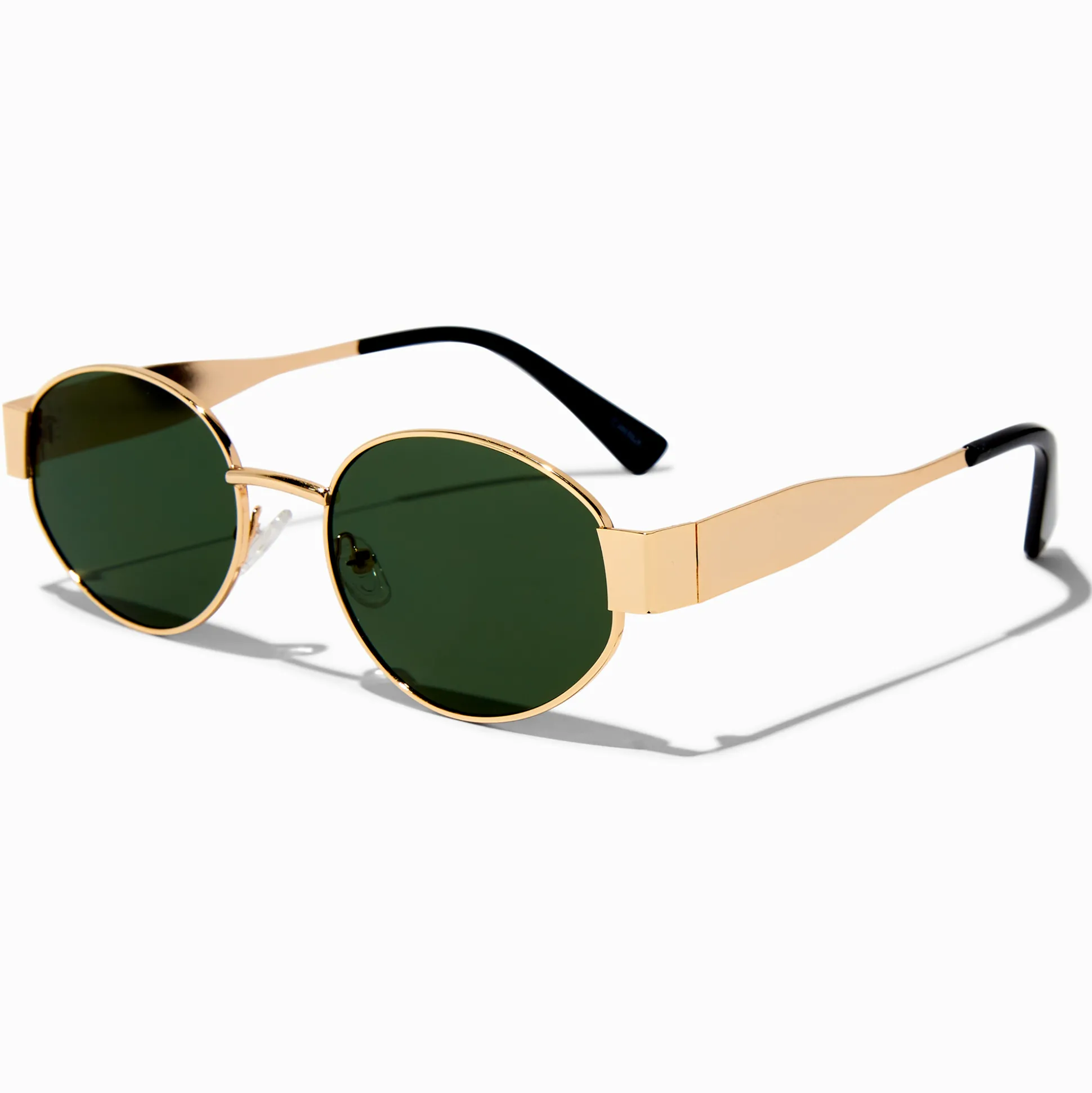 Ces lunettes de soleil super stylées t’aideront à protéger tes beaux yeux bleus (ou marron ou verts !) des rayons du soleil. Elles sont couleur dorée avec une monture ovale en métal.