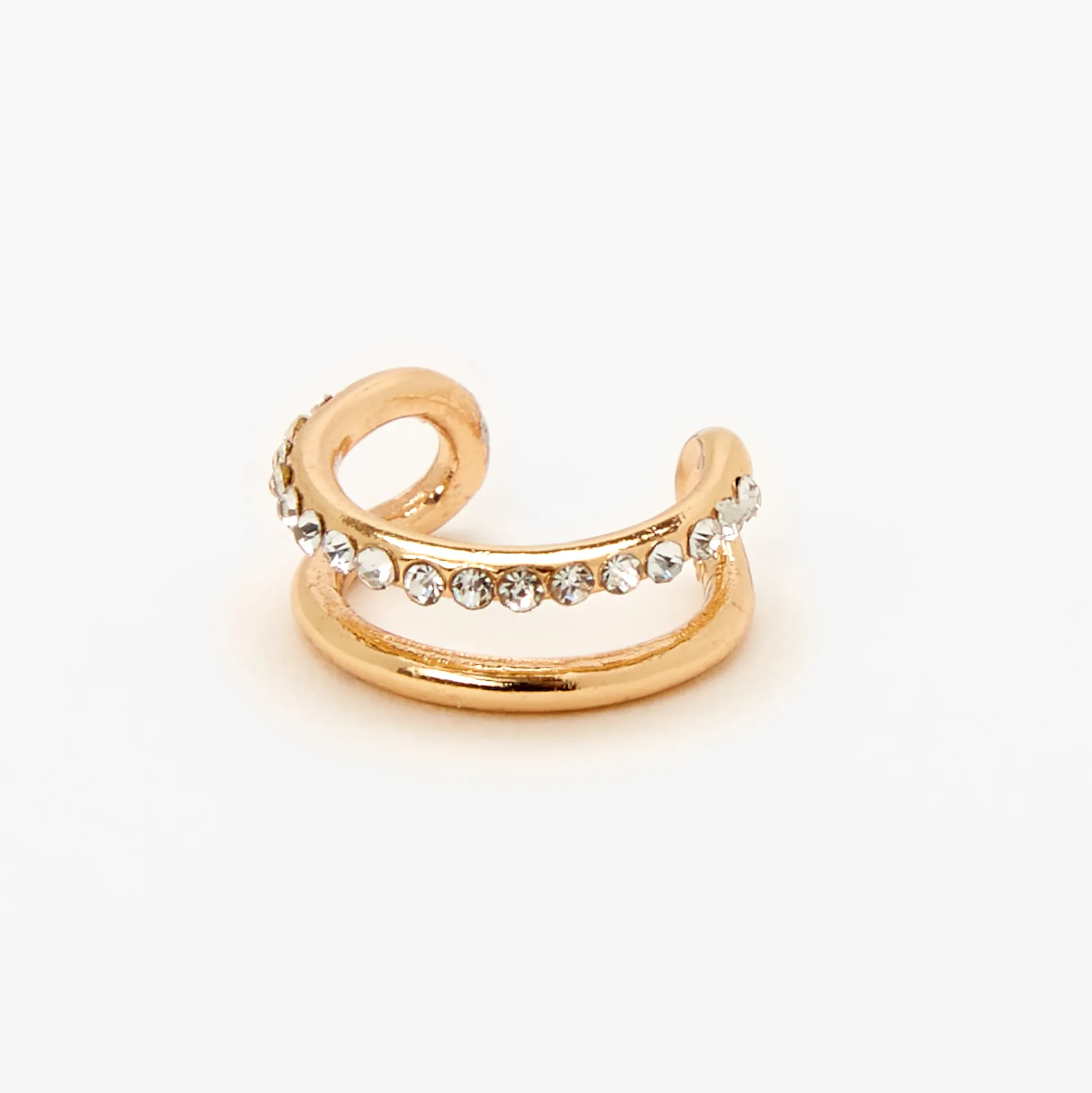 Complète le look de tes boucles d’oreilles en ajoutant cette manchette d’oreille couleur dorée classique ! Avec son design double rang orné de strass sur un seul rang, tu n’as plus qu’à clipser cette manchette sur ton cartilage et à l’assortir avec tes bijoux préférés.