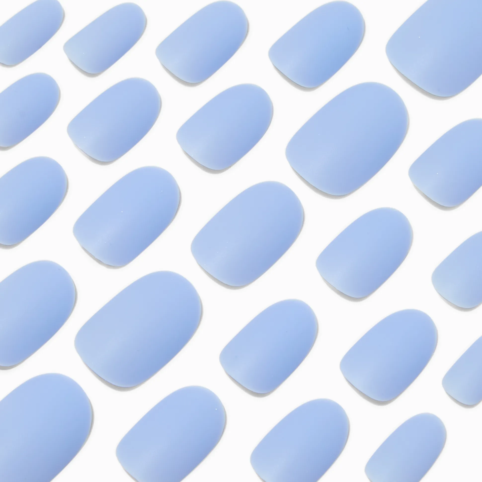 With an improved fit and up to a 7-day wear, these medium oval vegan faux nails are on-trend faves. They come in 12 different sizes, so finding the perfect shaped nail is a breeze. With a medium oval shape, these faux nails have a matte baby blue finish.