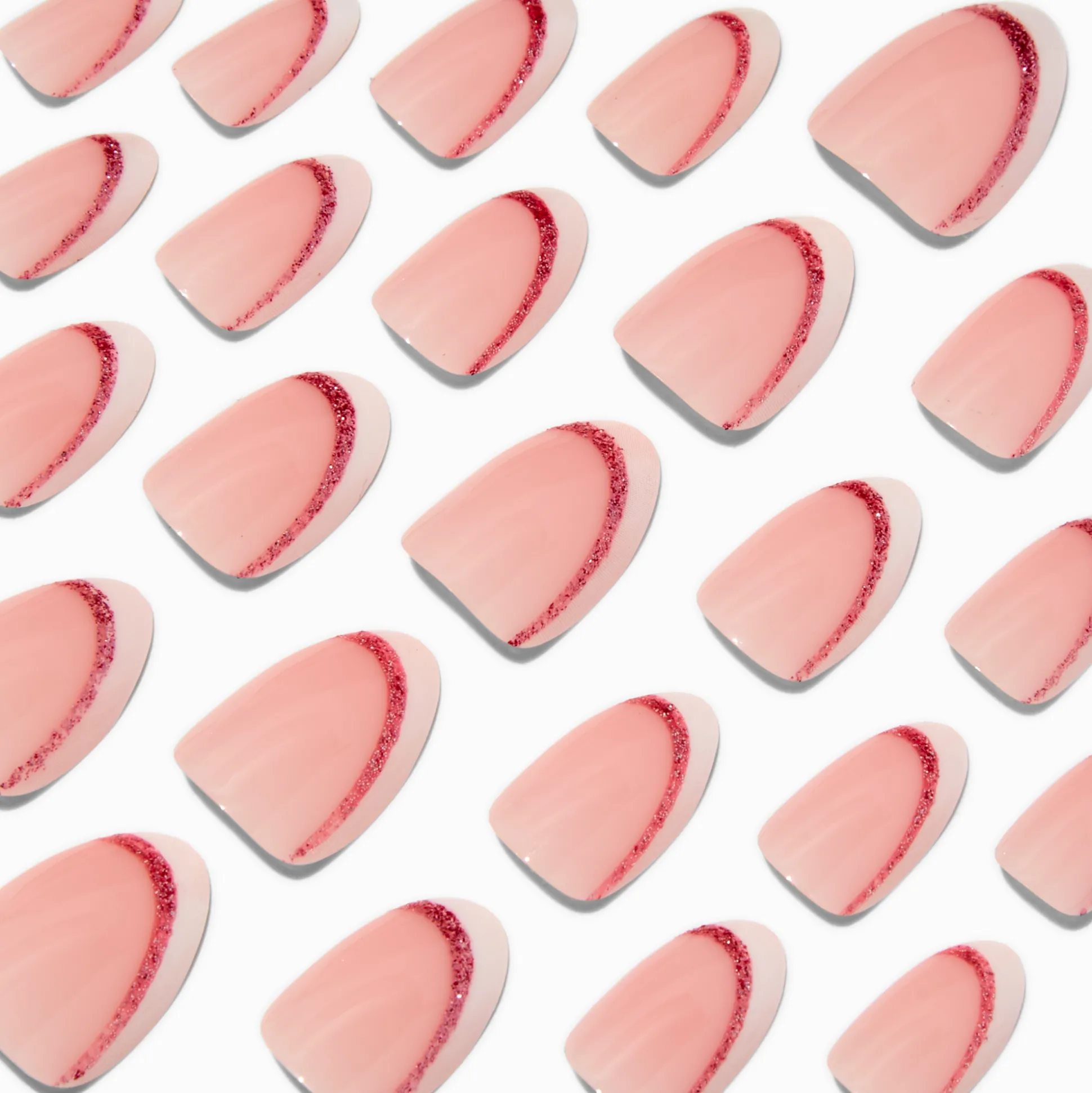 With an improved fit and up to a 7-day wear, these vegan faux nails are on-trend faves. They come in 12 different sizes, so finding the perfect shaped nail is a breeze. With an almond shape, these faux nails have a glittery French tip finish.
