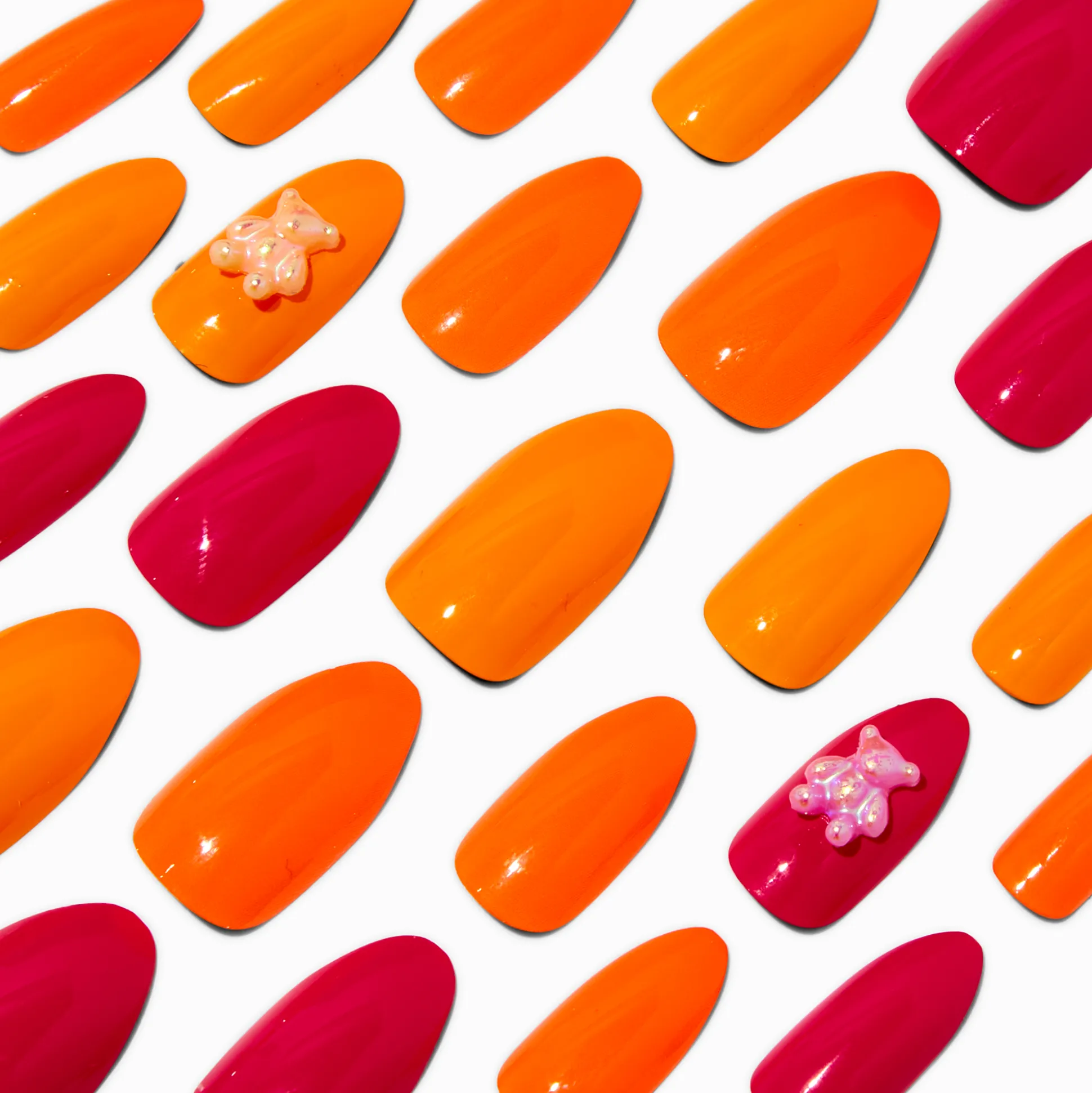 With an improved fit and up to a 7-day wear, these vegan faux nails are on-trend faves. They come in 12 different sizes, so finding the perfect shaped nail is a breeze. With a stiletto shape, these faux nails have a cute bear charm on some.