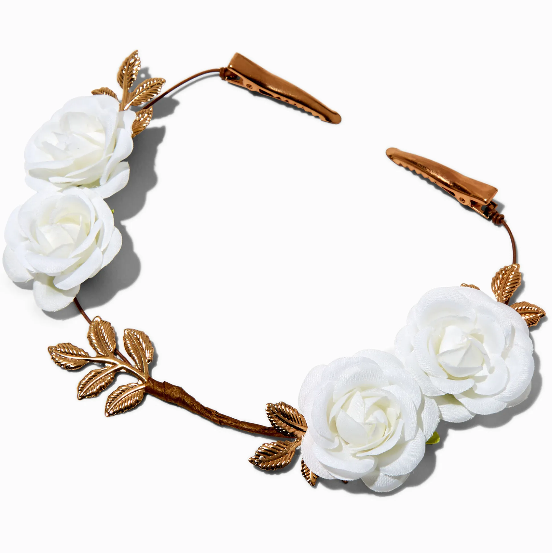 Ajoute des ondes féériques à ton look avec cet ornement pour cheveux super élégant ! Il arbore deux roses d’un blanc éclatant, des feuilles couleur dorée, et un cordon marron. Il se clipse dans tes cheveux et il est parfait pour les festivals, les mariages, et autres événements spéciaux.