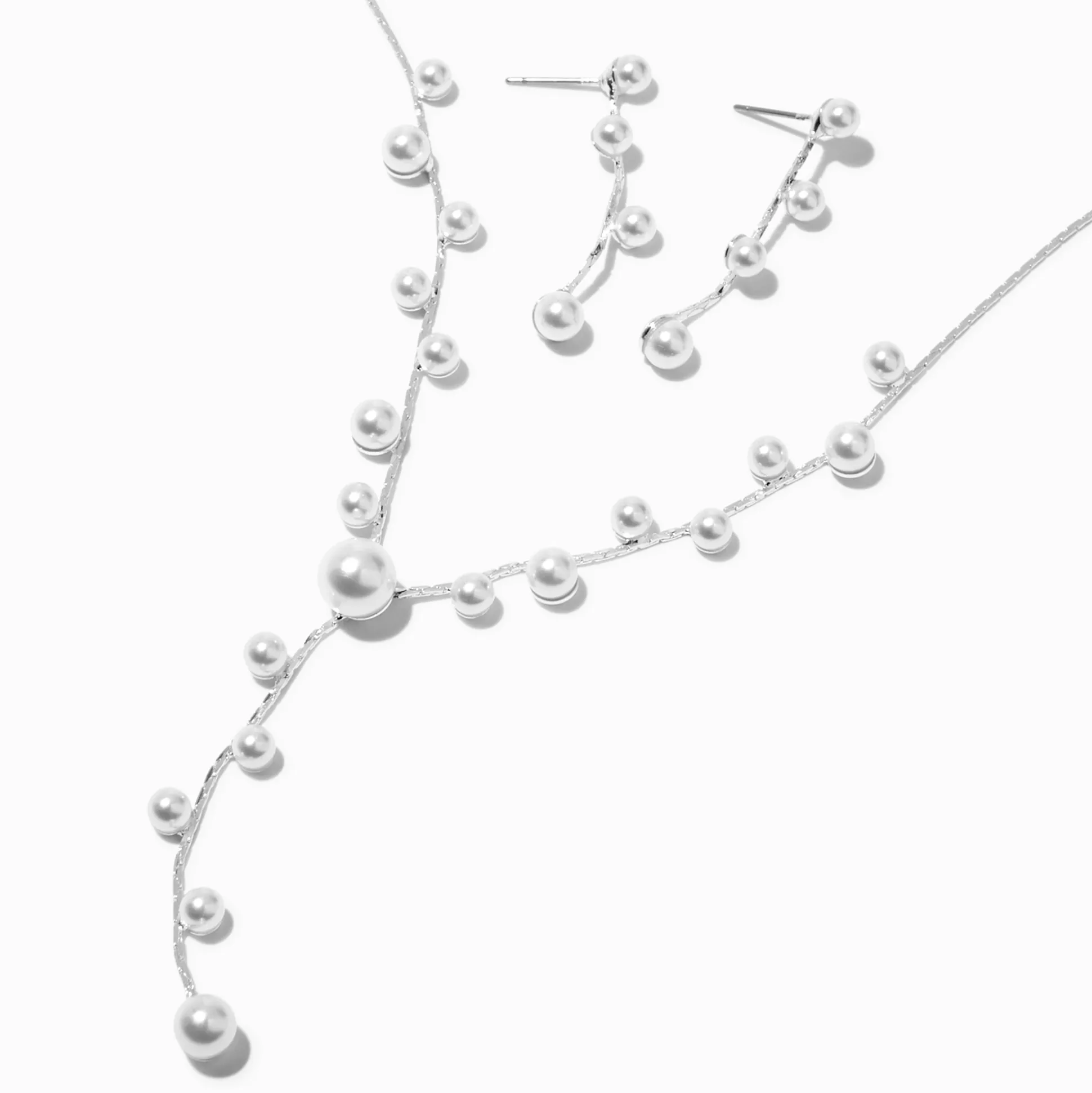 Voici une perle de sagesse : ajoute cette perle d’imitation à ta tenue d’occasion spéciale, et offre-toi un look vraiment classique. Cette parure de bijoux comprend un collier en Y couleur argentée qui est couvert de perles d’imitation. Il est assorti à une superbe paire de pendantes en perles d’imitation.
