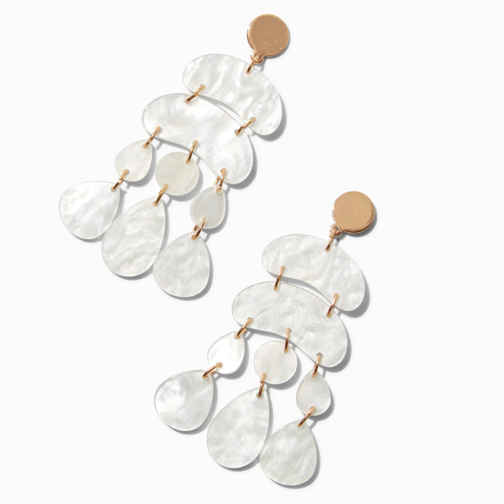 Get all of the likes with these dramatic chandelier drop earrings. The gold-tone designs have a white pearlized chandelier-style shape.