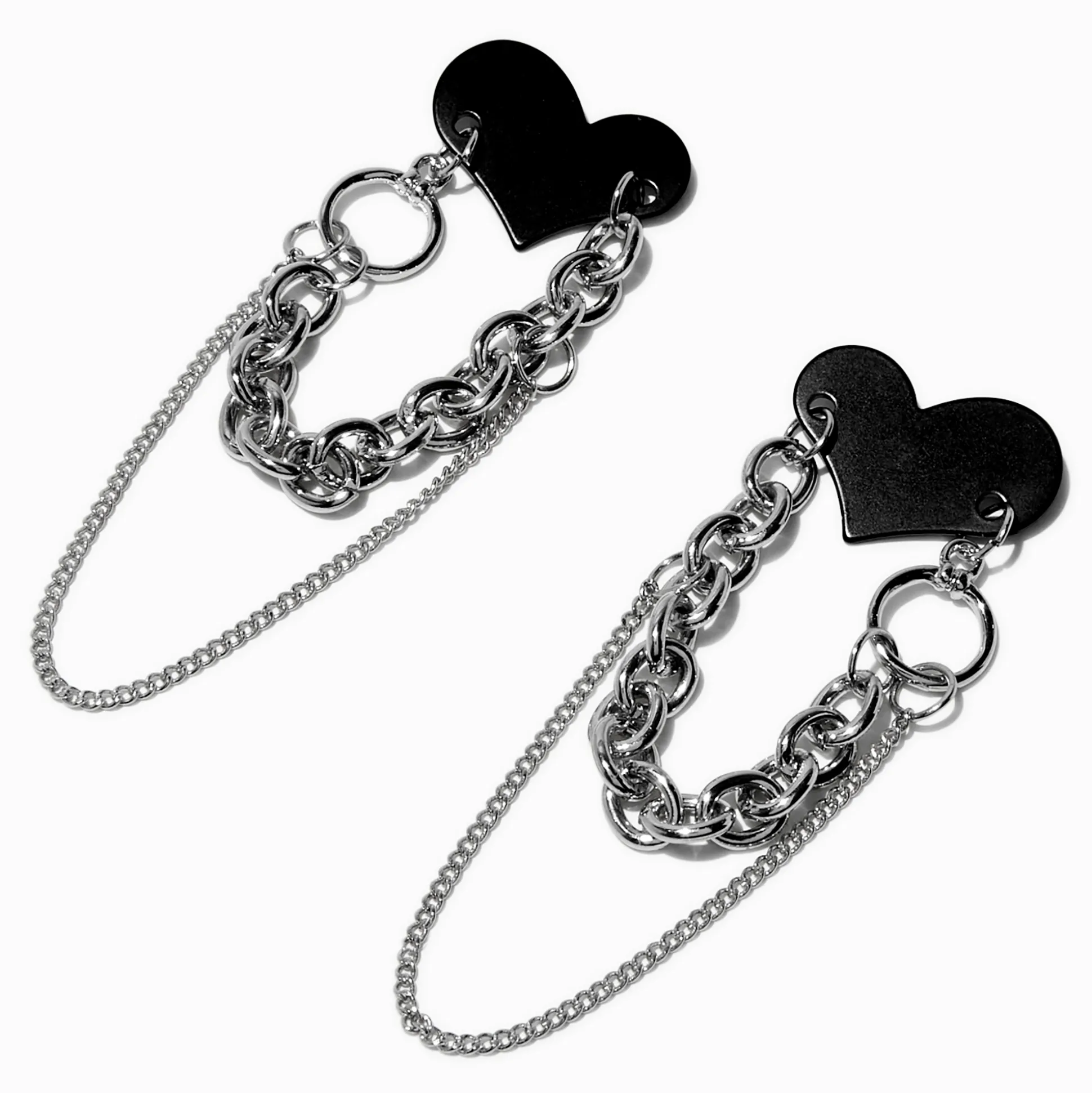 Entre dans ta période maillons de chaîne avec ces pendantes. Les fermoirs à tige arrière arborent des cœurs émaillés noirs agrémentés de chaînes.