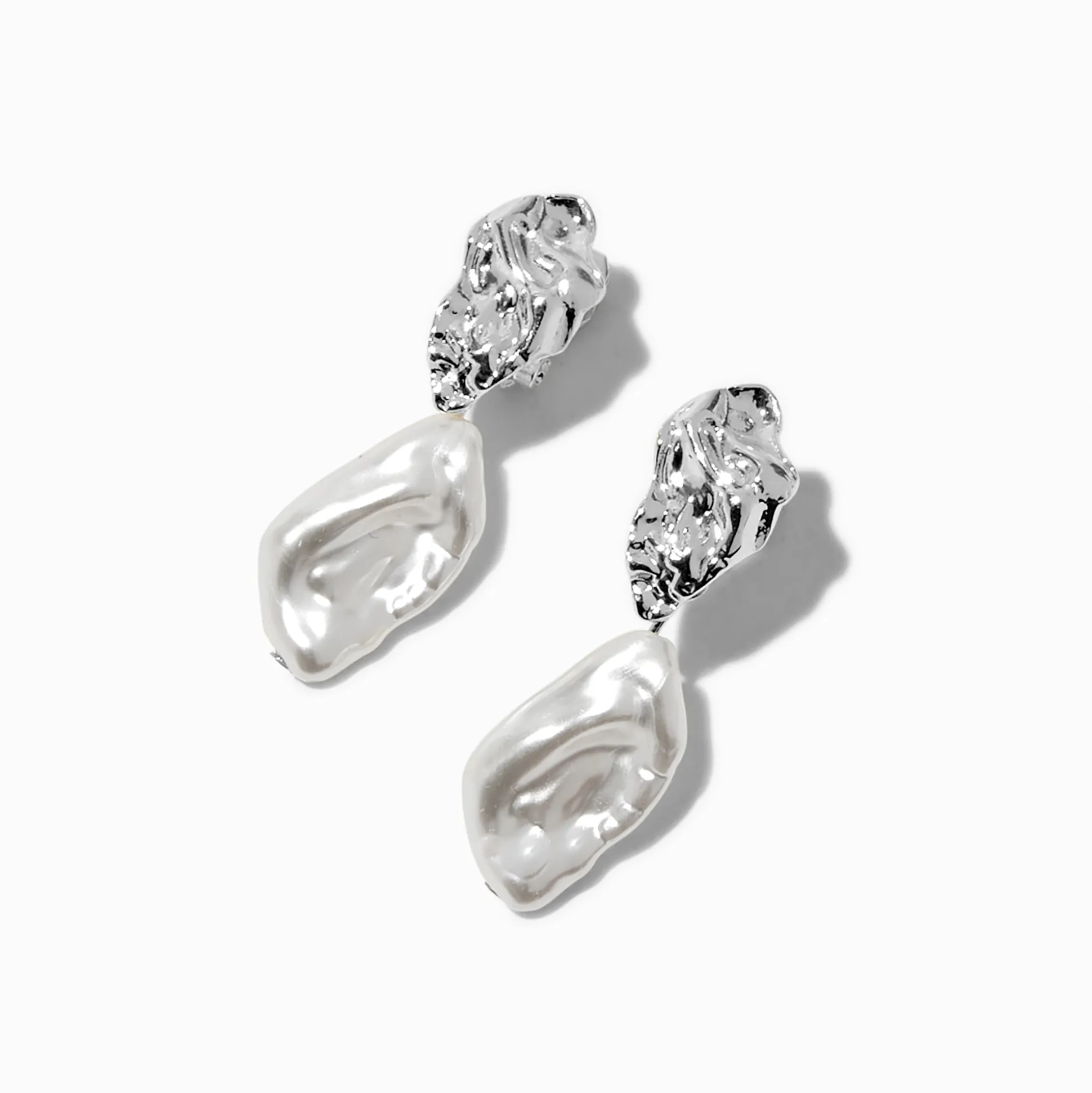 La beauté de ces boucles d’oreilles couleur argentée écrase tout sur son passage ! Les pendantes à clip arborent un design texturé qui est agrémenté d’une perle d’imitation écrasée.