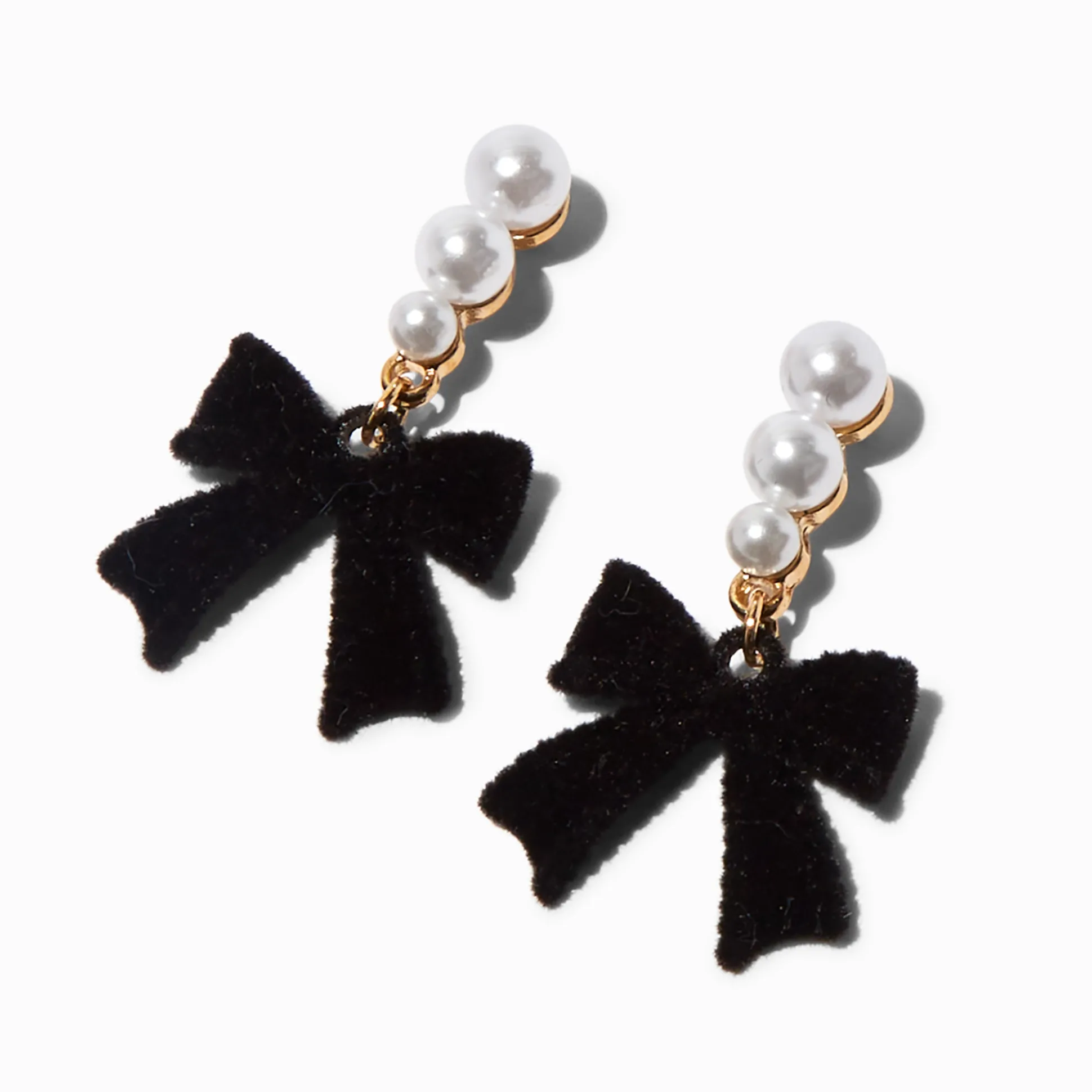 Sois parfaite en mode coquette avec ces superbes pendantes. Les designs couleur dorée arborent des perles d’imitation qui sont finies avec un nœud en imitation velours noir.
