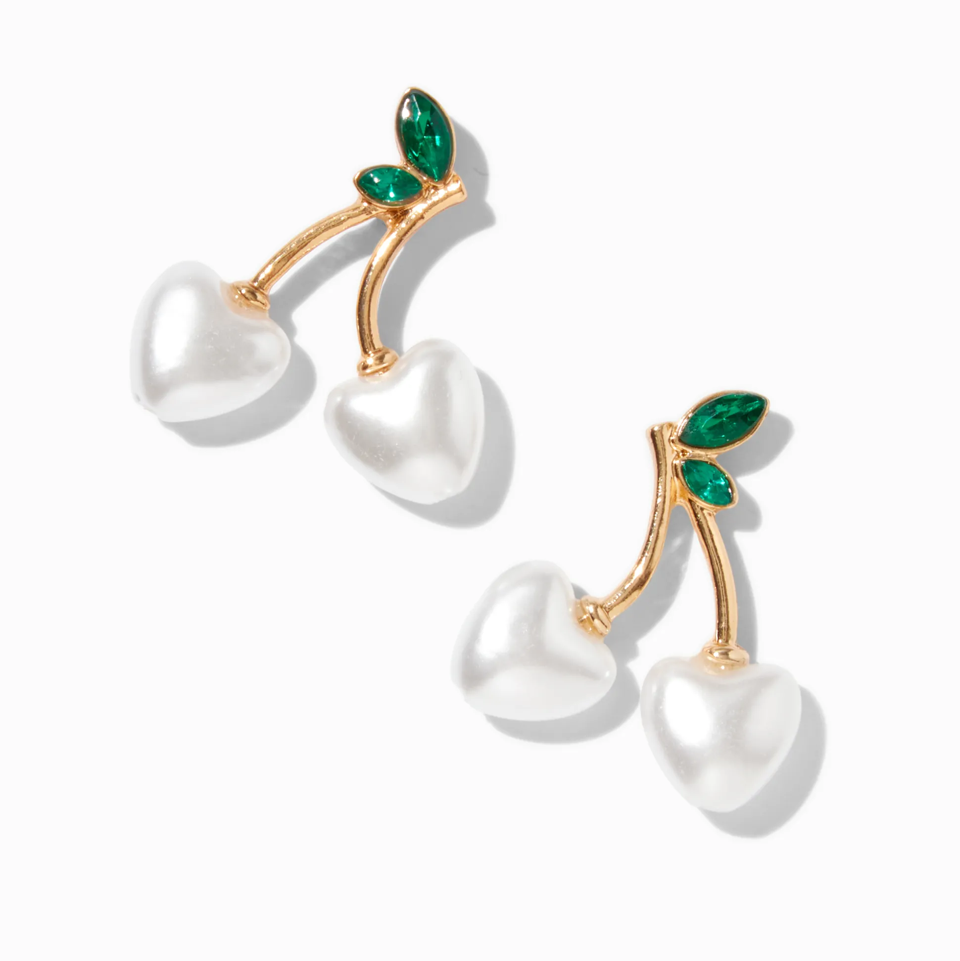 Ces boucles d’oreilles sont belles à croquer ! Les boucles d’oreilles arborent des cerises en perle d’imitation sur des tiges arrière couleur dorée.