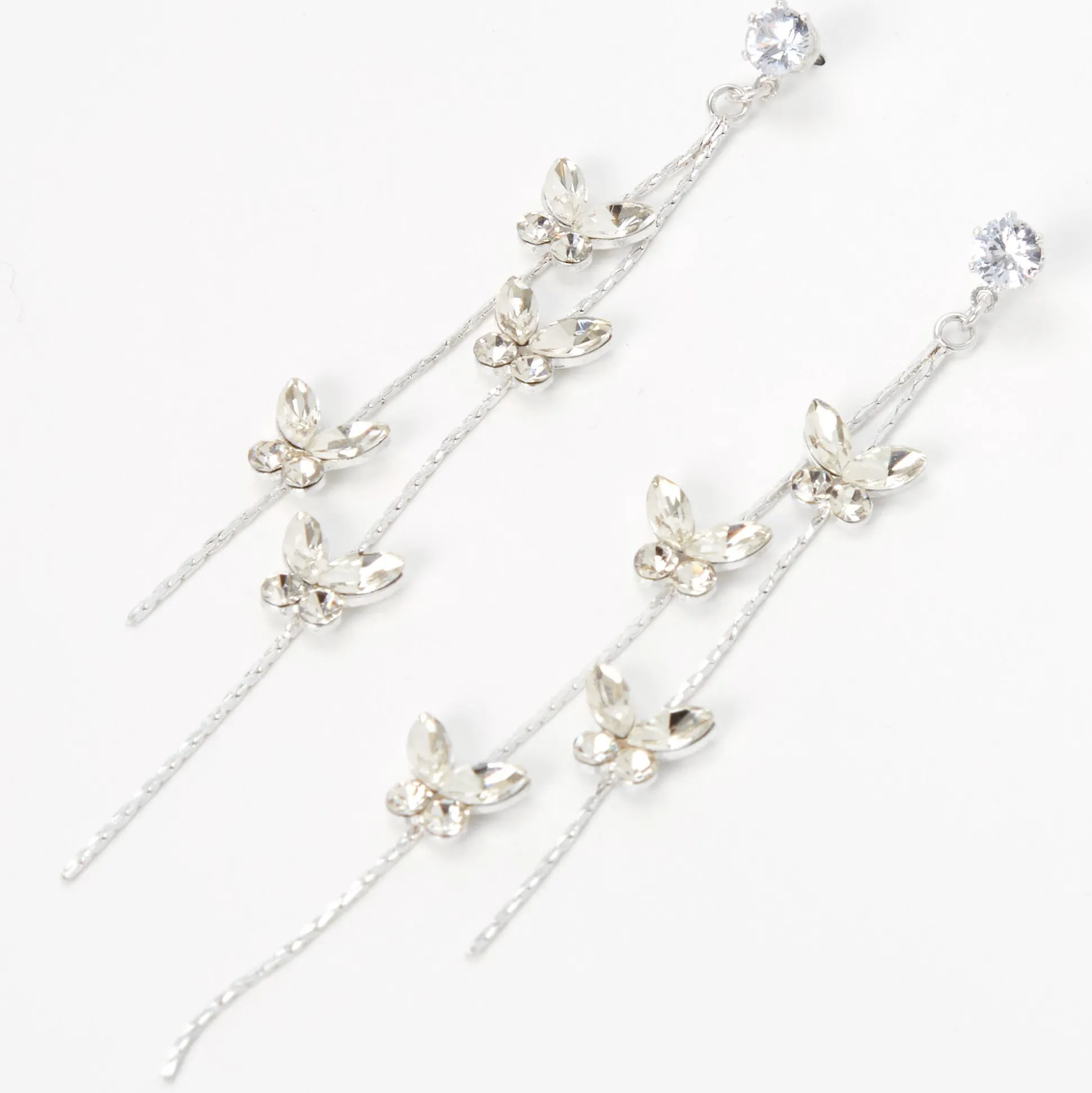 Fais briller tes oreilles avec ces boucles d’oreilles linéaires classiques arborant des papillons composés de strass en zircon cubique d’imitation. Les papillons pendent de chaînes, ce qui donne à ces boucles d’oreilles un effet flottant.
