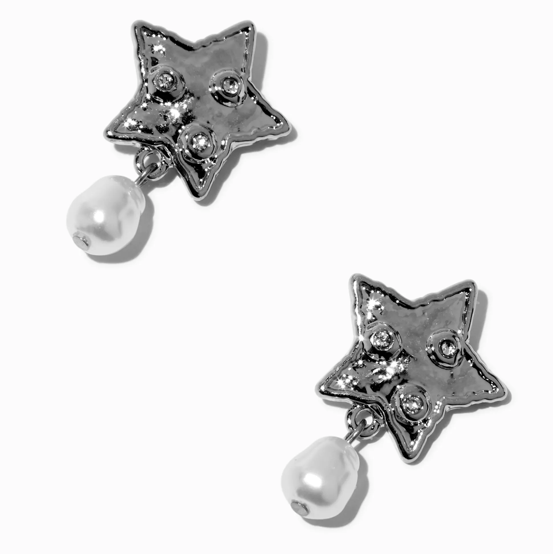 Complète ton look avec la touche finale parfaite. Les boucles d’oreilles sont finies avec une perle d’imitation pendante et un clou cœur couleur argentée martelé.