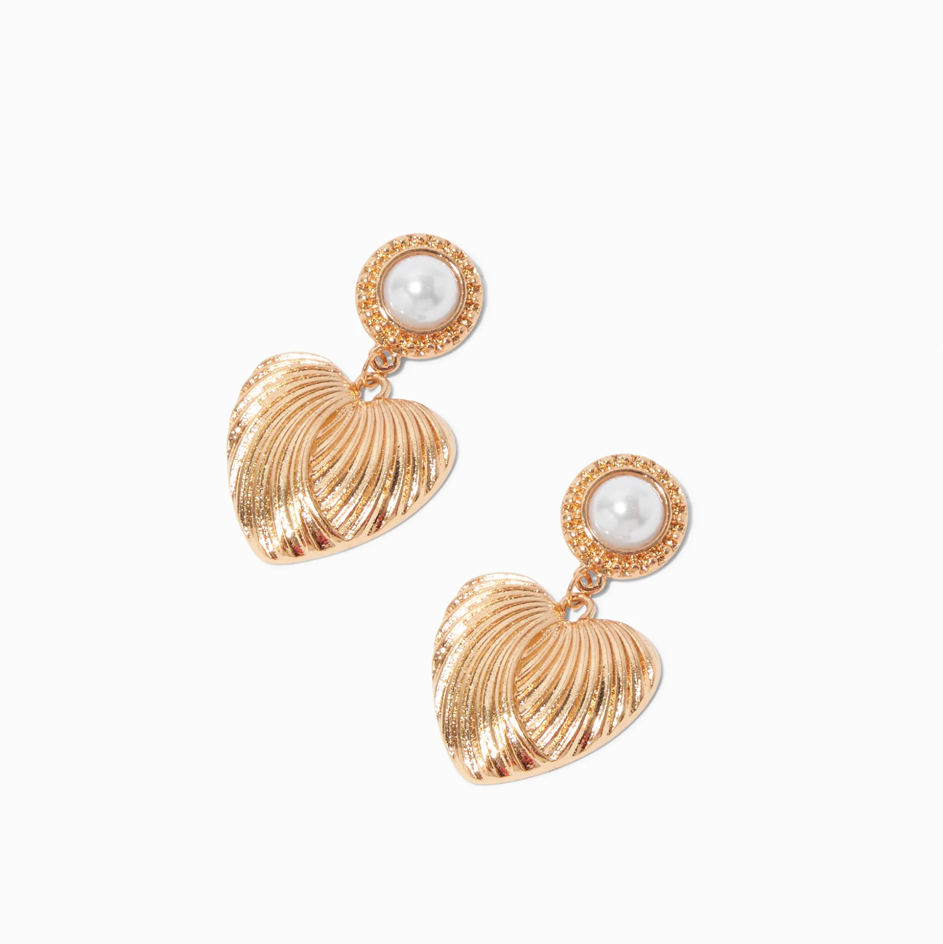 Crée un look qui te ressemble et que tu vas adorer avec ces pendantes ! Les designs couleur dorée commencent par une perle d’imitation sertie en halo et se terminent par un design cœur pendant texturé.