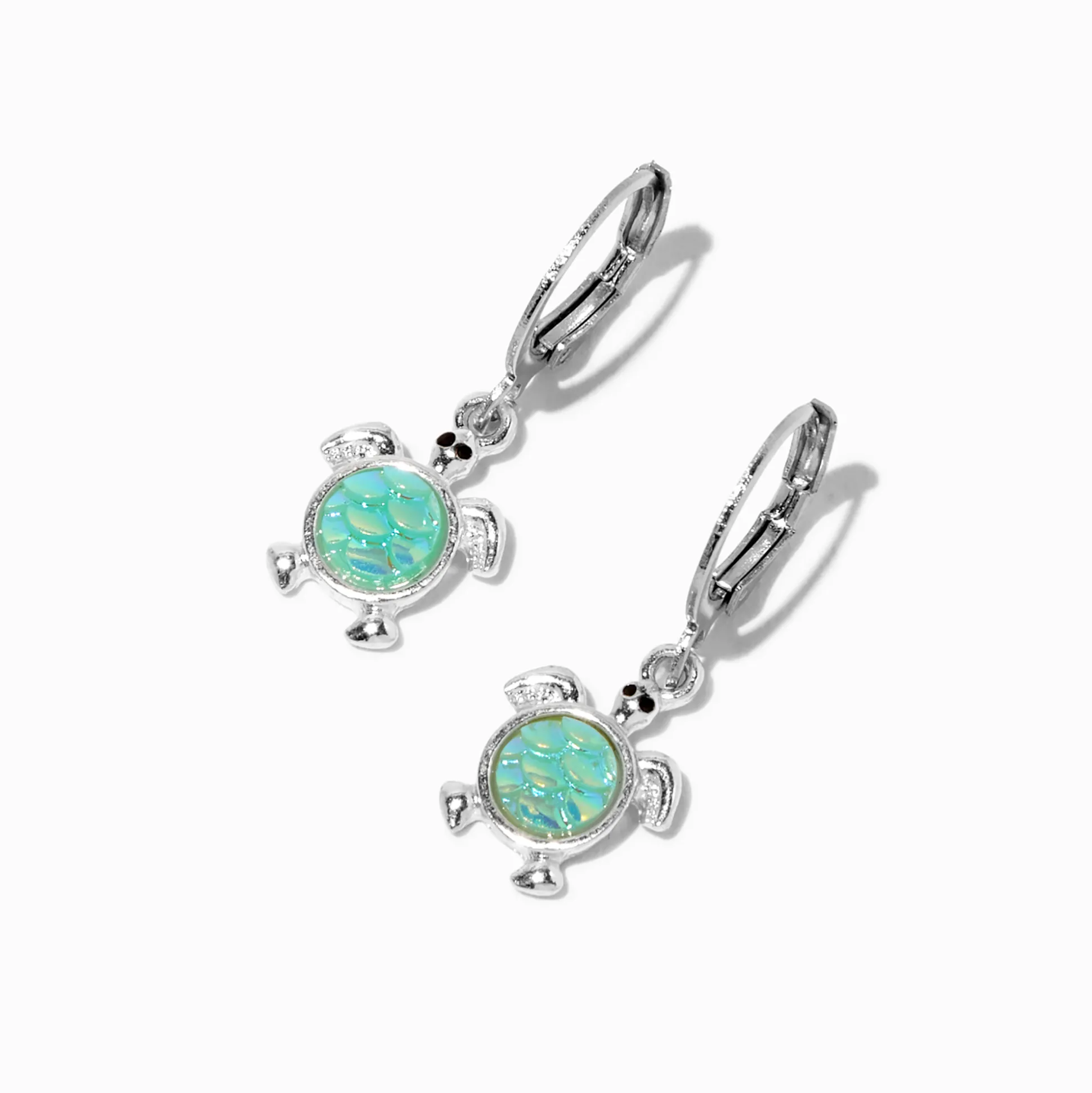 Transforme ton look avec ces pendantes qui changent de couleur. Les pendantes couleur argentée arborent un motif tortue qui change de couleur au soleil ! Parfait pour un look de vacances.