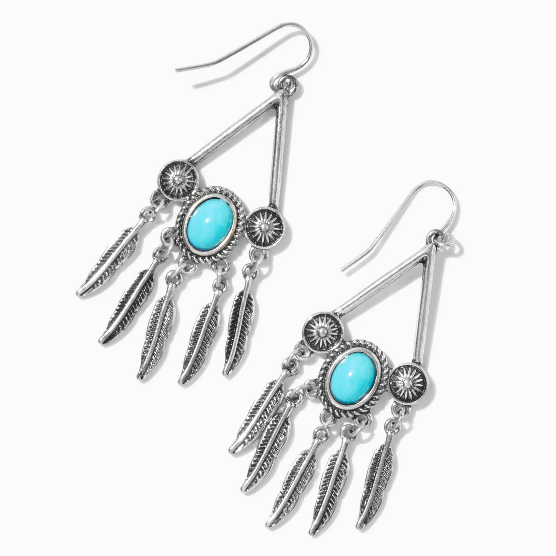 Laisse ton côté cowgirl s’exprimer à travers ces pendantes couleur argentée. Elles arborent un design triangulaire avec des éléments en turquoise d’imitation.