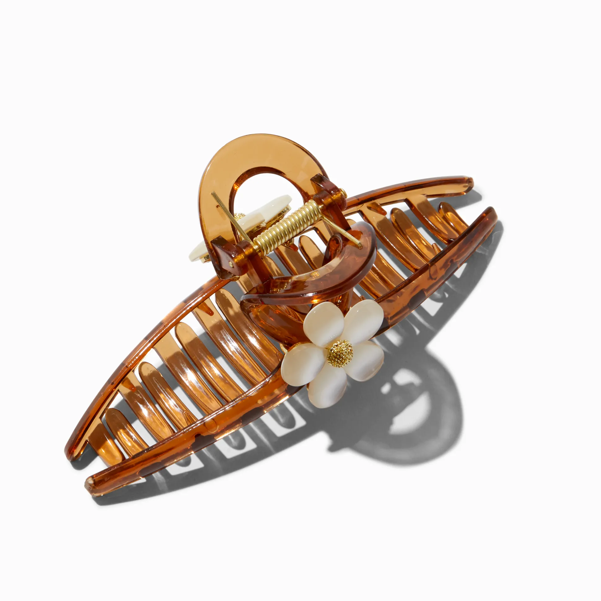 Pince à cheveux en métal marron fleur blanche