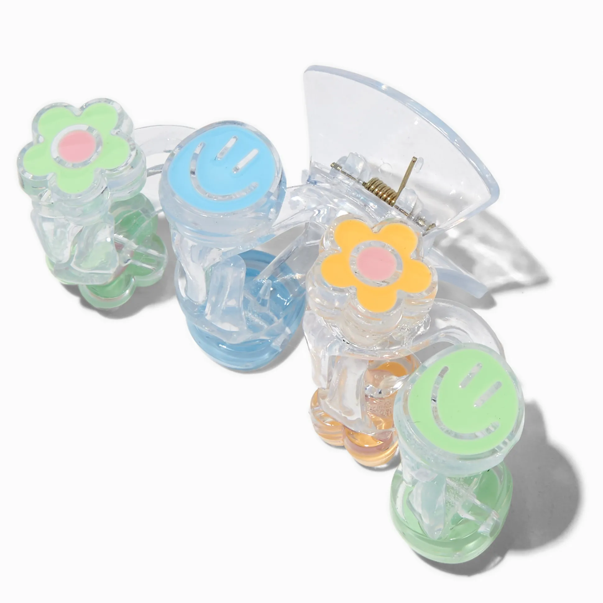Égaie ta journée avec les visages souriants et les fleurs de cette pince à cheveux. Parfait pour garder tes cheveux hors de ton visage.
