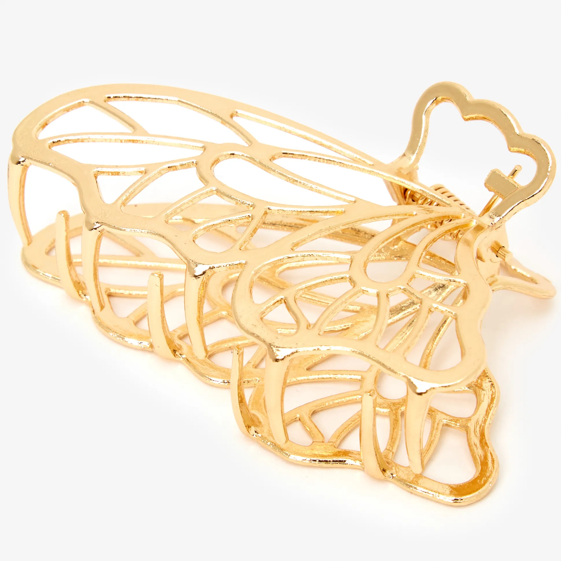 Relève tes cheveux ou maintiens-les en arrière de manière élégante avec cette pince à cheveux couleur dorée ! Parfaite pour ajouter une touche de détail chic à n’importe quelle coiffure, cette pince à cheveux de taille moyenne est agrémentée d’un design papillon.