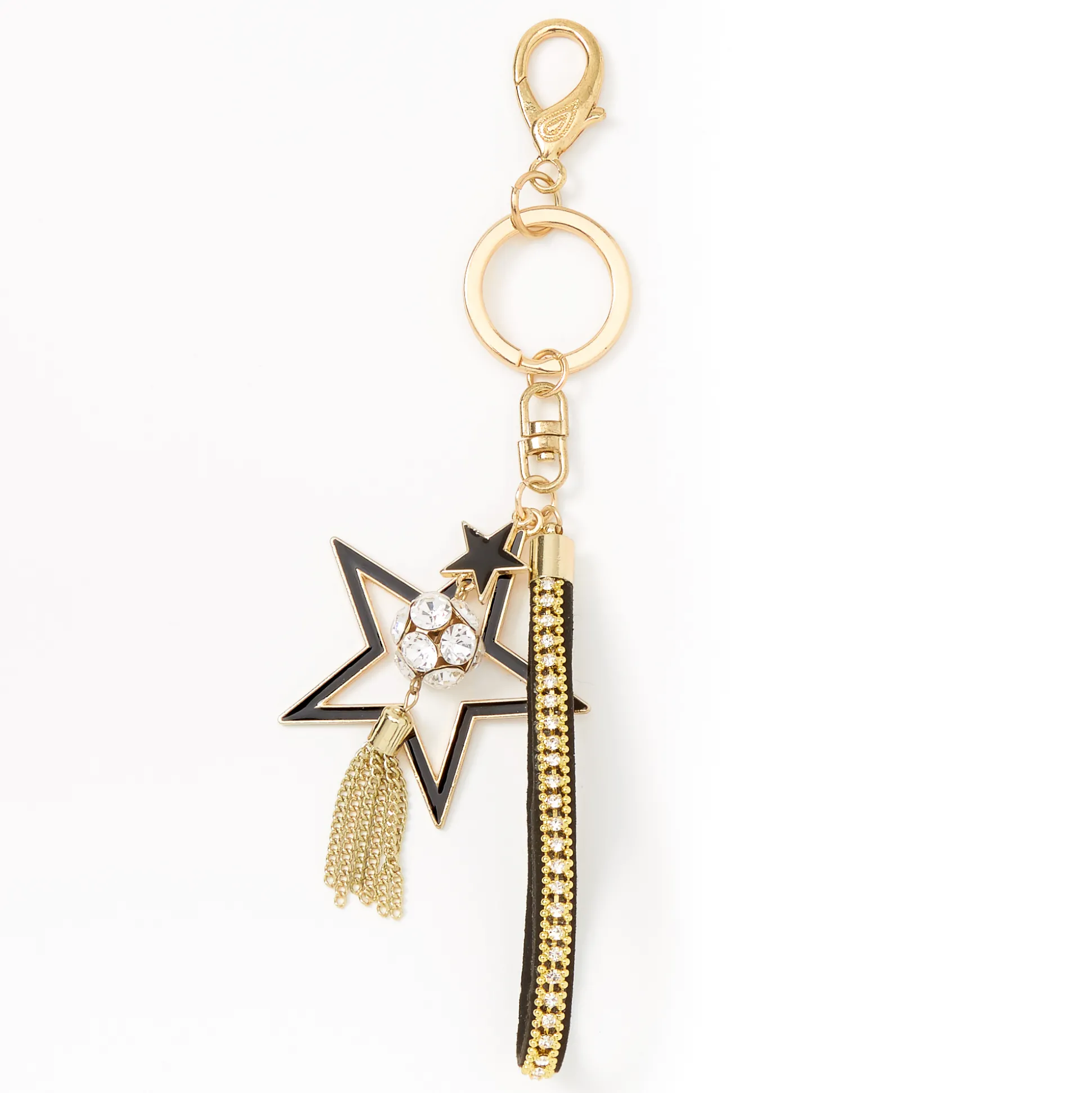 Ce porte-clés est agrémenté d’une dragonne avec une décoration couleur dorée, d’une découpe d’étoile noire, et d’une boule de feu en strass avec un pompon. Ce porte-clés aura l’air tellement chic attaché à ton sac ou utilisé pour accrocher tes clés !