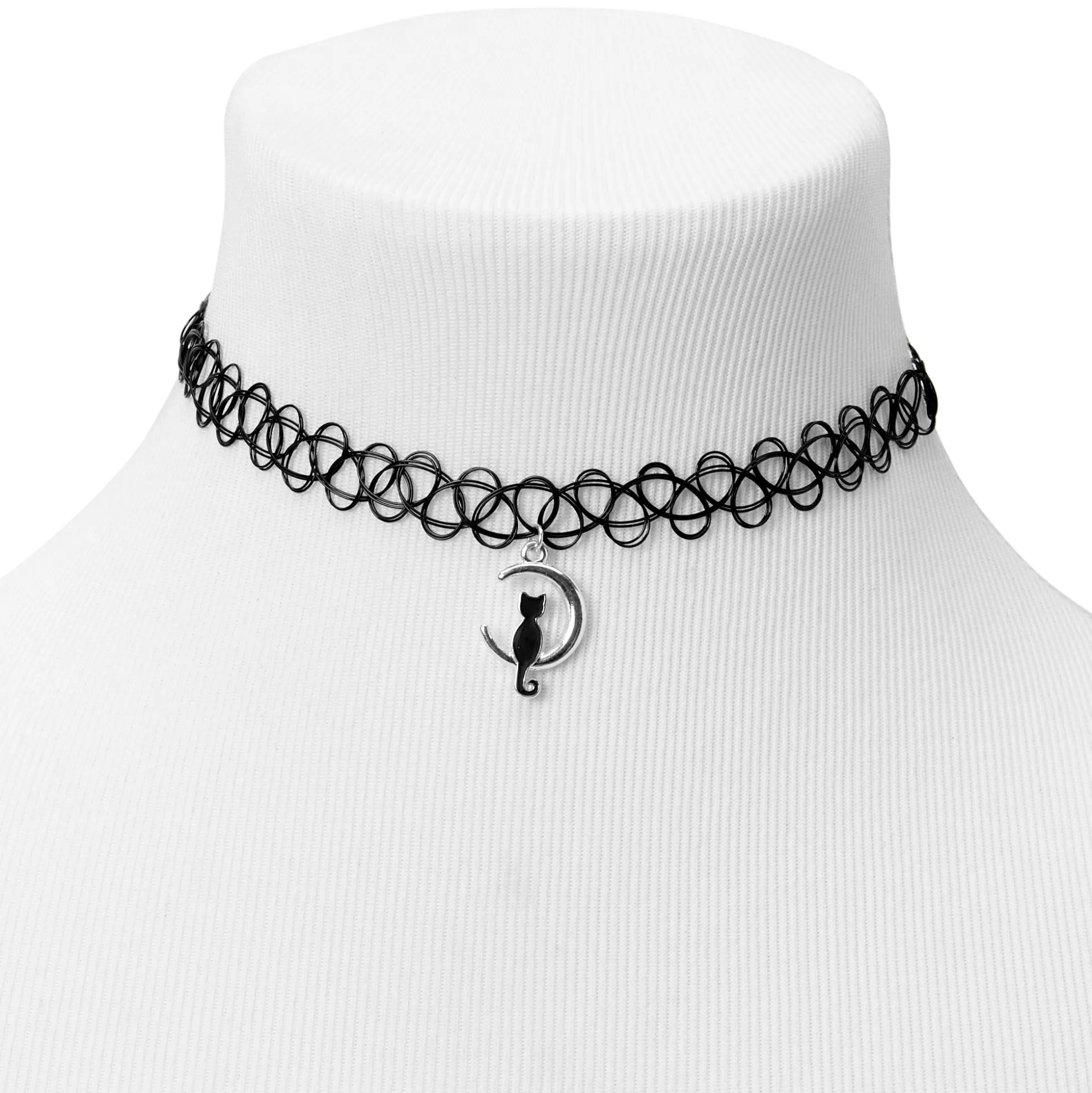 Revisite ta tenue en incorporant des couleurs sombres avec ce ras-de-cou chat noir et lune au look décalé ! Le ras-de-cou noir effet tatouage est agrémenté d’une breloque d’humeur chat noir et d’un croissant de lune…et il vient à point nommé pour la saison de l’épouvante !