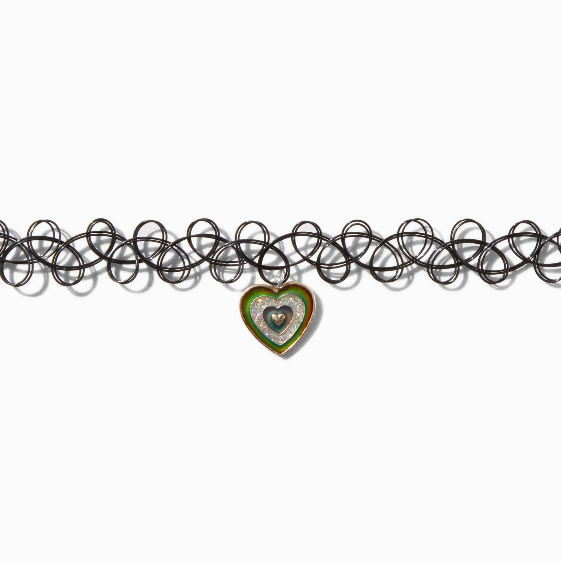 Ajoute un détail super mignon à ton look avec ce ras-de-cou effet tatouage ! Le collier comprend une breloque cœur arc-en-ciel sur un ras-de-cou noir effet tatouage.