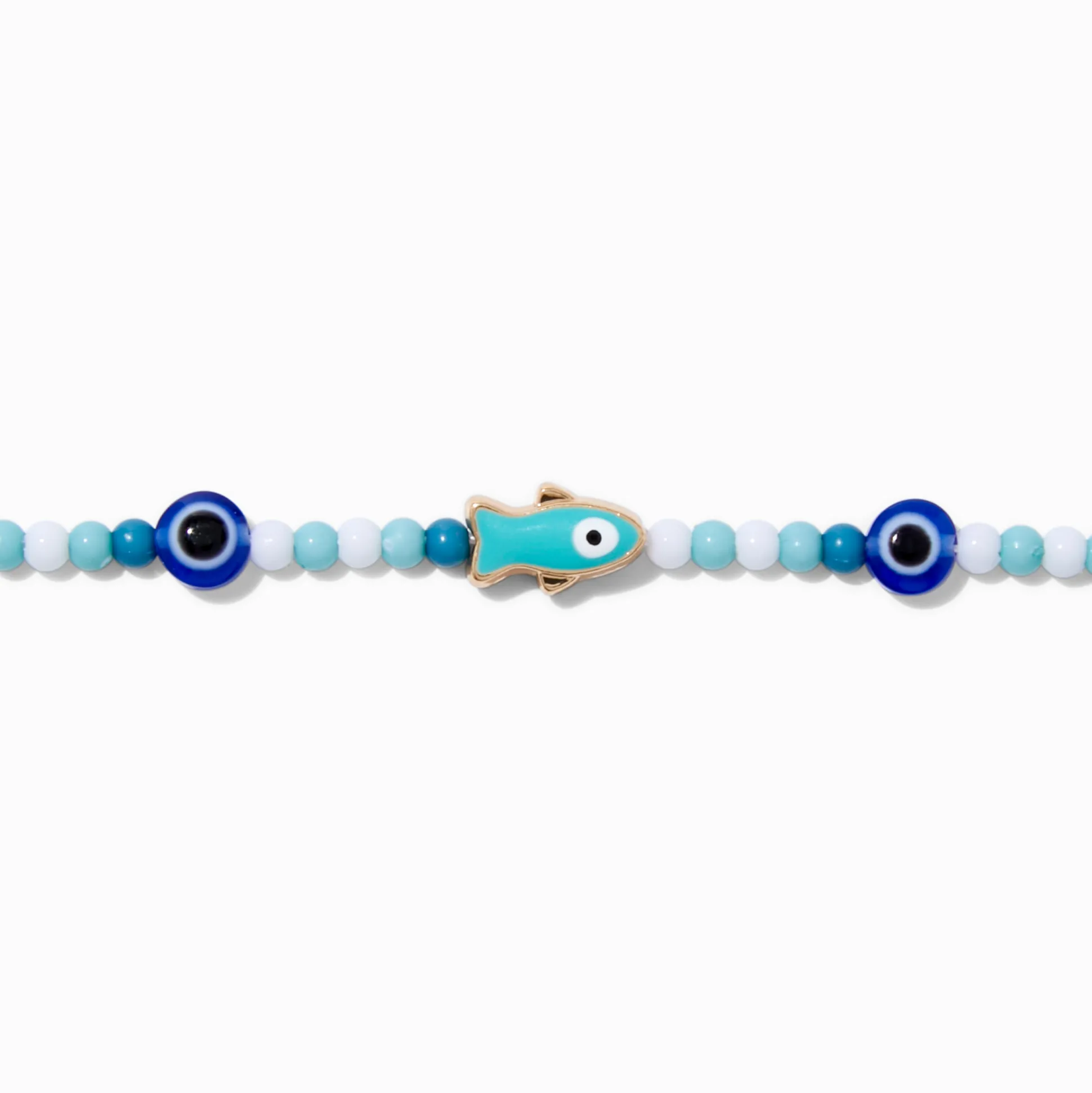 Pêche le style parfait avec ce ras-de-cou perlé super mignon ! Le design couleur dorée est couvert de tons de bleu, une bille poisson couleur turquoise, et deux yeux bleus.