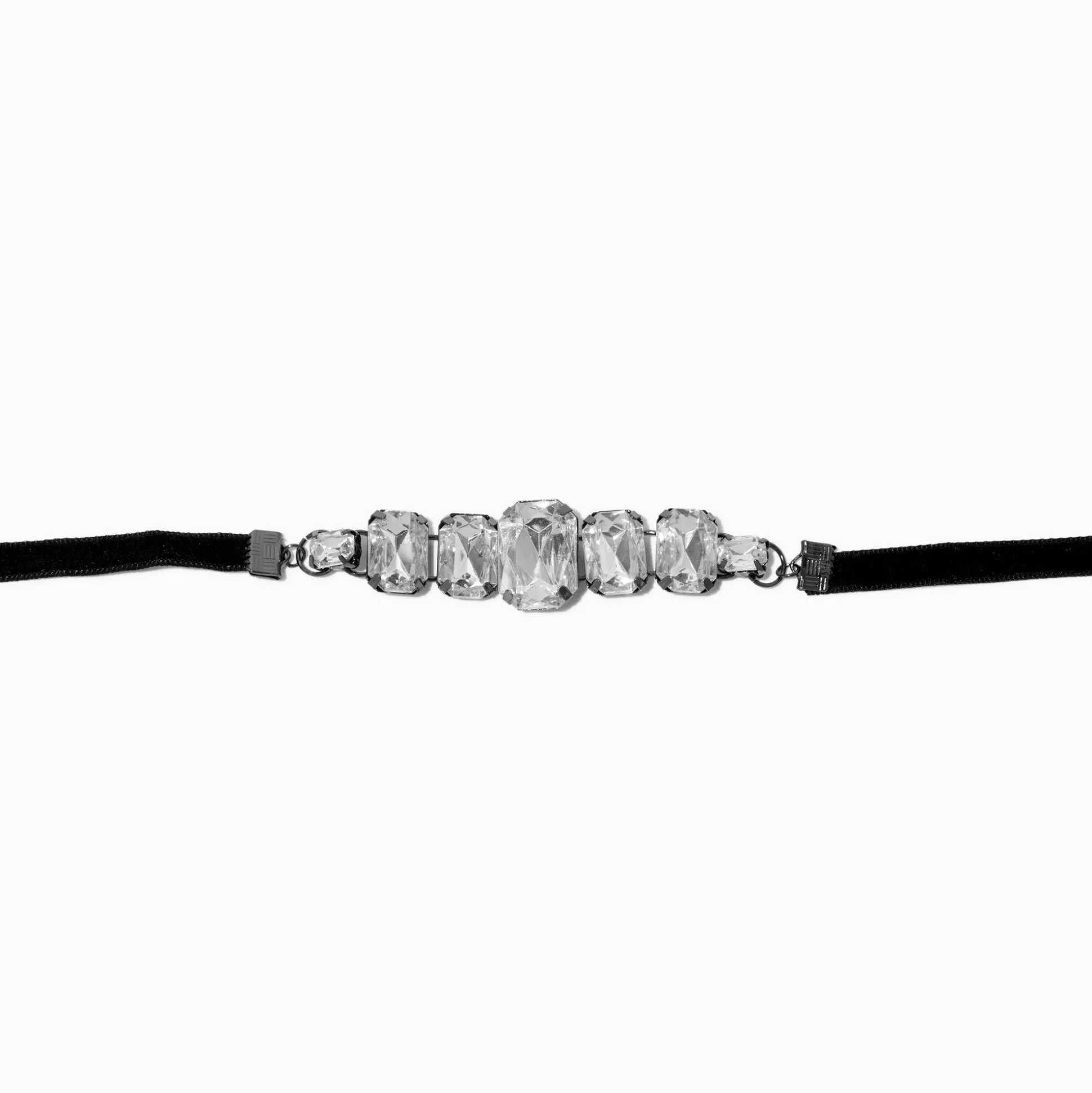 Sois toi et sois au top avec ce ras-de-cou. Le collier en imitation velours noir est agrémenté d’un rang de strass rectangulaires.