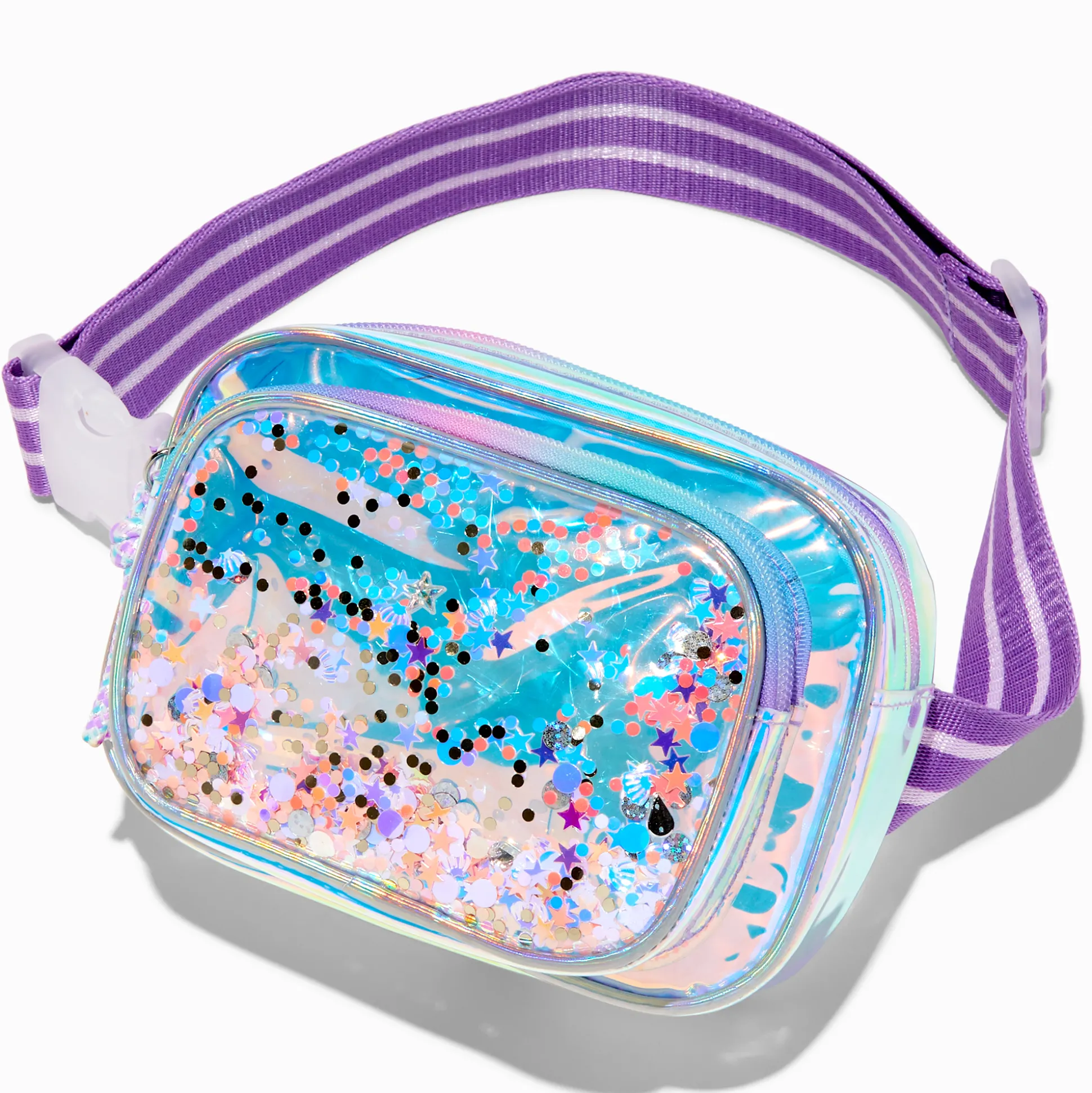 Super pratique pour du shopping, des festivals, des défilés, des randonnées, et bien plus encore, les sacs se portant à la taille comme celui-ci te permettent de garder les mains libres ! Ce sac banane iridescent arbore un détail confetti shaker. La ceinture se règle facilement à la taille et se porte super confortablement.