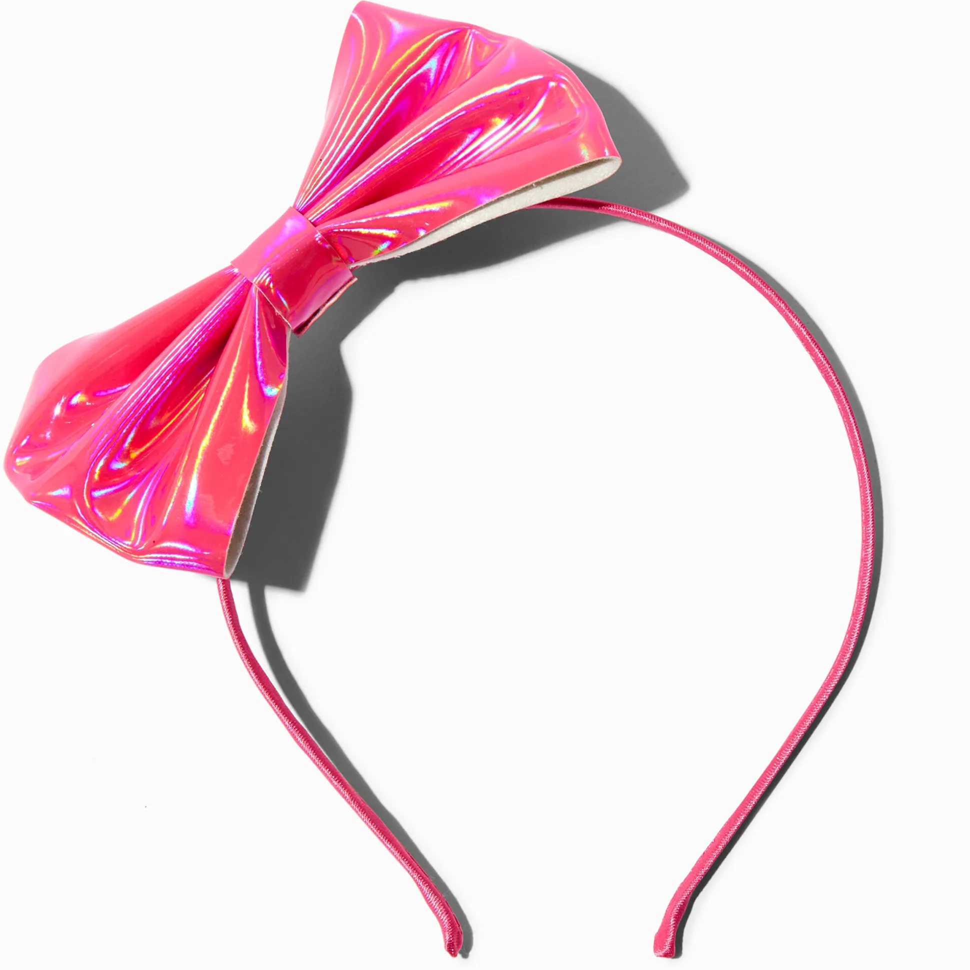 Recouvert d’un fini holographique brillant, ce serre-tête à nœud rose vif placé sur le côté ne laissera personne indifférent. Il semble refléter des couleurs différentes chaque fois que tu bouges la tête – parfait pour un look qui sort du lot.