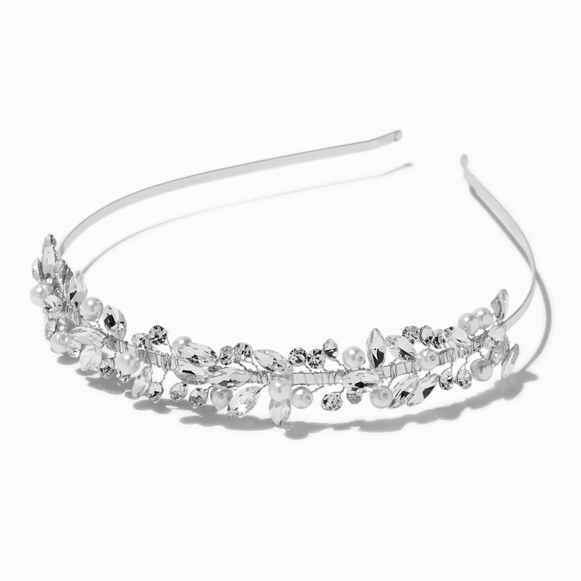 Ajoute une touche d’originalité à ta garde-robe d’accessoires pour cheveux grâce à ce fabuleux serre-tête. Les feuilles en strass scintillants de taille marquise et les belles perles d’imitation blanches sont enroulées sur un serre-tête fin et couleur argentée. C’est le choix parfait quand tu cherches à compléter ton look pour une occasion spéciale.