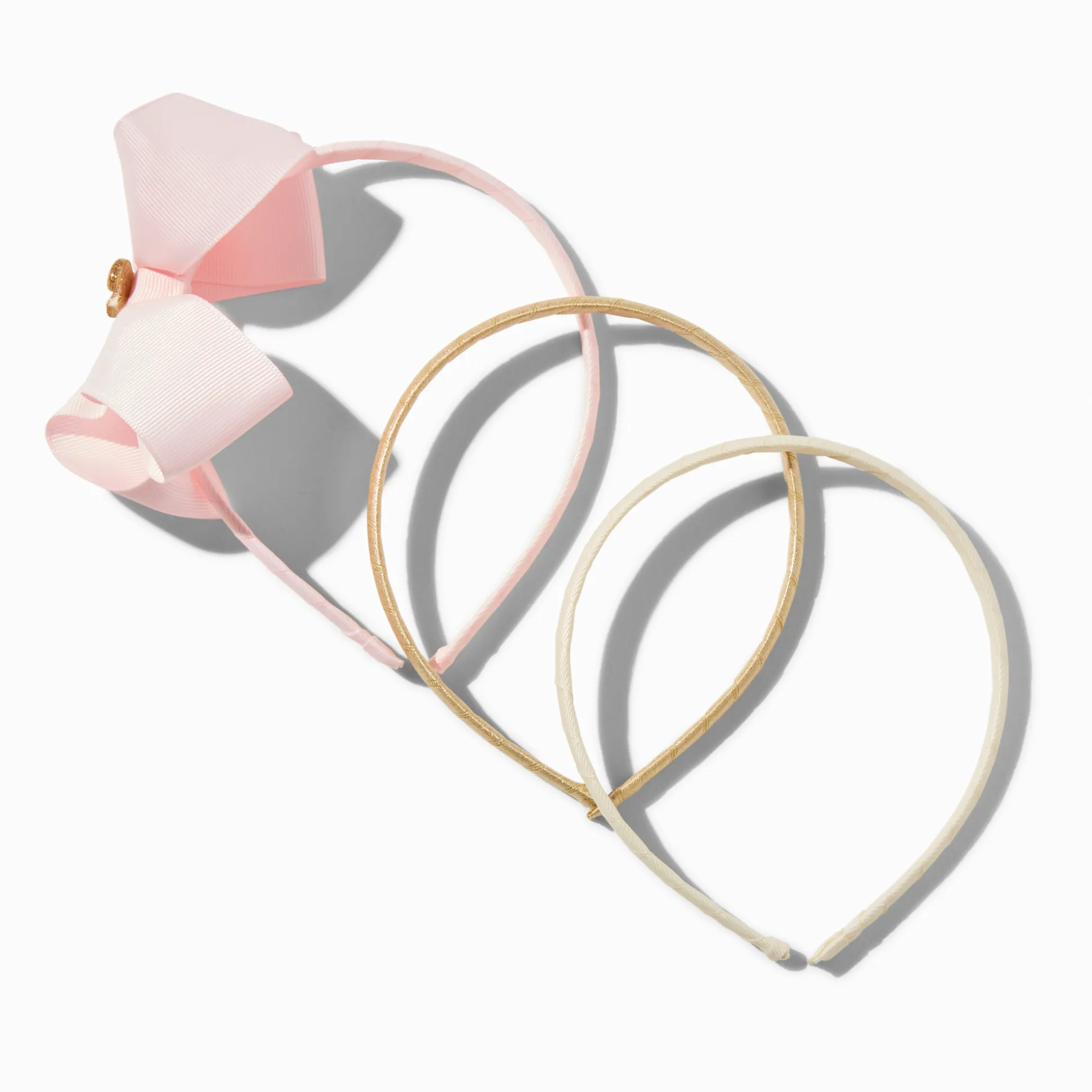 Serre-têtes à nœud tons neutres rose tendre Claire's Club – Lot de 3