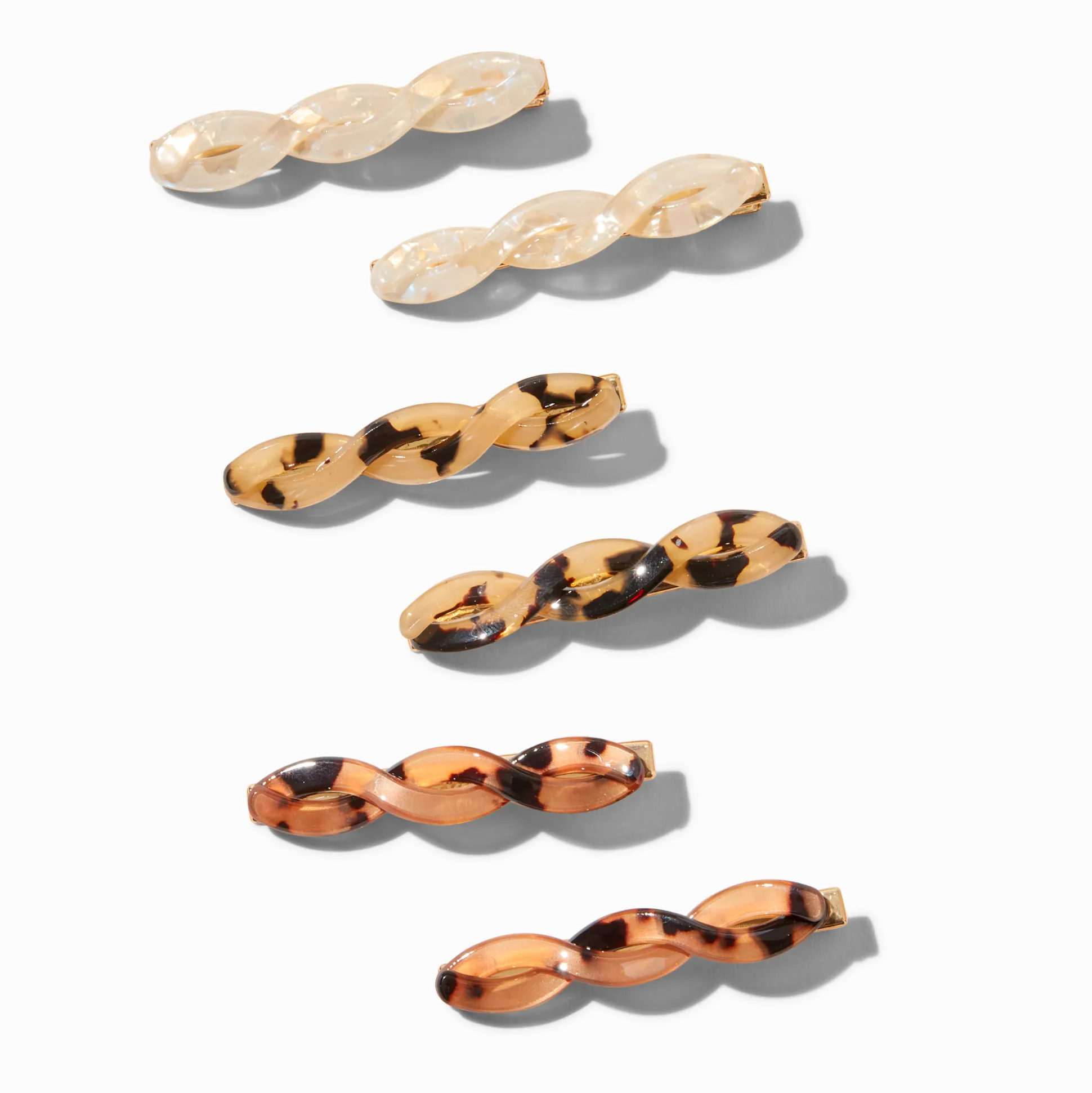 Twisted Tortoiseshell Hair Clips – 6 Pack