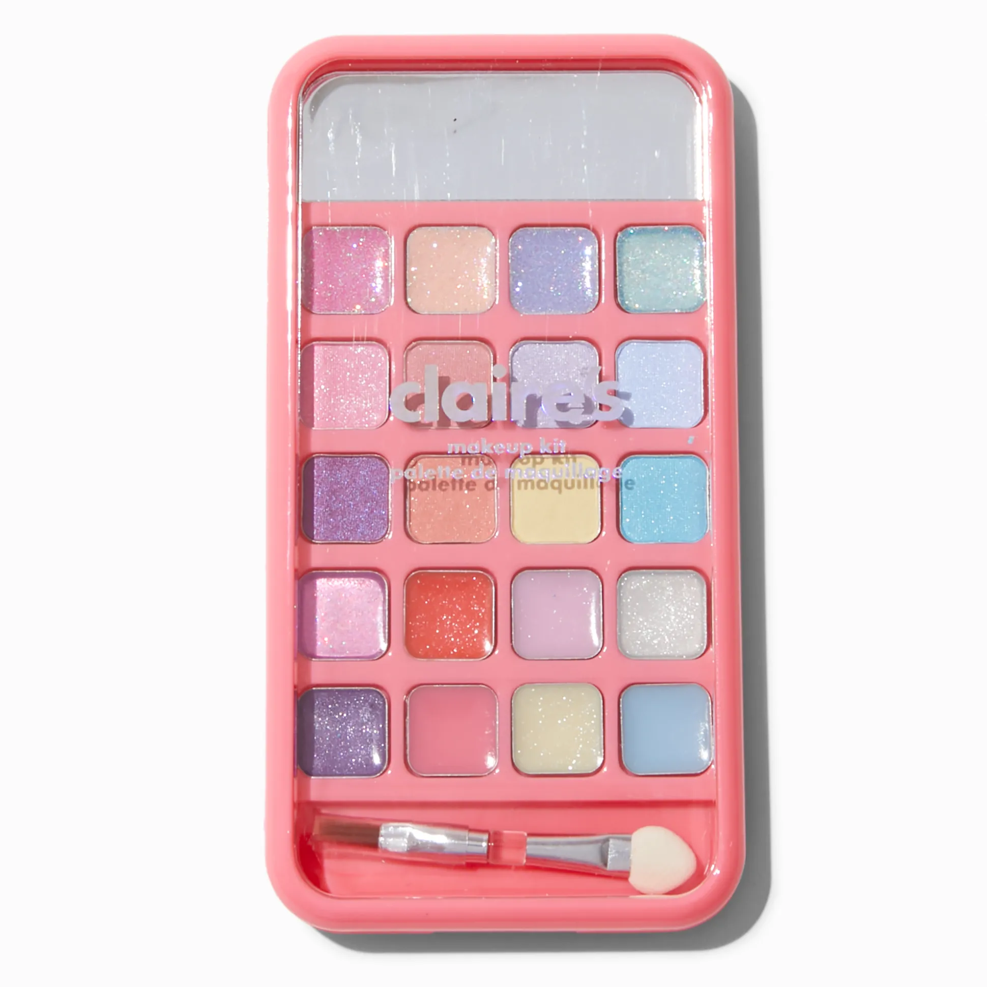 It looks like a cellphone, but it’s actually a makeup palette filled with all the colours you need to look your best. Includes 12 eyeshadows, 8 lip glosses, and a dual applicator, all in an sparkly case, decorated with stickers.